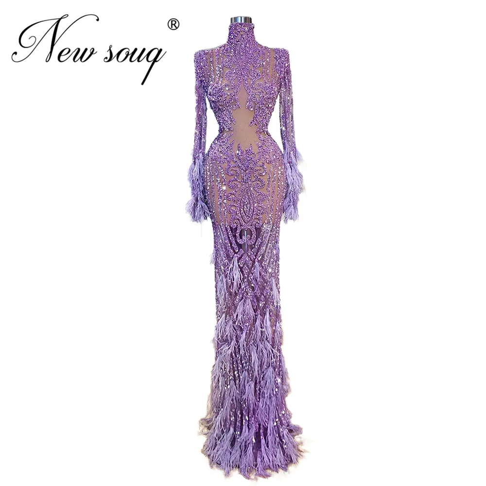 Женское вечернее платье с бисером и перьями, Прозрачное платье ручной работы с кристаллами в стиле знаменитостей, Дубай, 2020