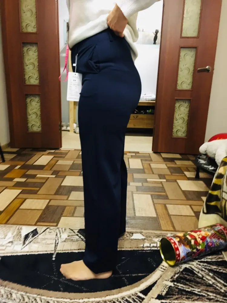 Заказ 15.12., отправлено 22.12., доставка в Москву на почту 06.01. трек отслеживался. На бедра 106, талию 87см взяла XXXL, сели хорошо, не врезаются, но на бОльший размер карманы будут некрасиво торчать, ткань тянется. Отличные брюки из трикотажа средней плотности на весну, теплую осень или прохладное лето, полностью соответствуют фото продавца, и цвет глубокий тёмно-синий такой же, как на фото. Общая длина 97 см, ширина штанины внизу 29 см. Мягкий пояс, два внутренних кармана. Сшиты очень аккуратно. Спасибо.