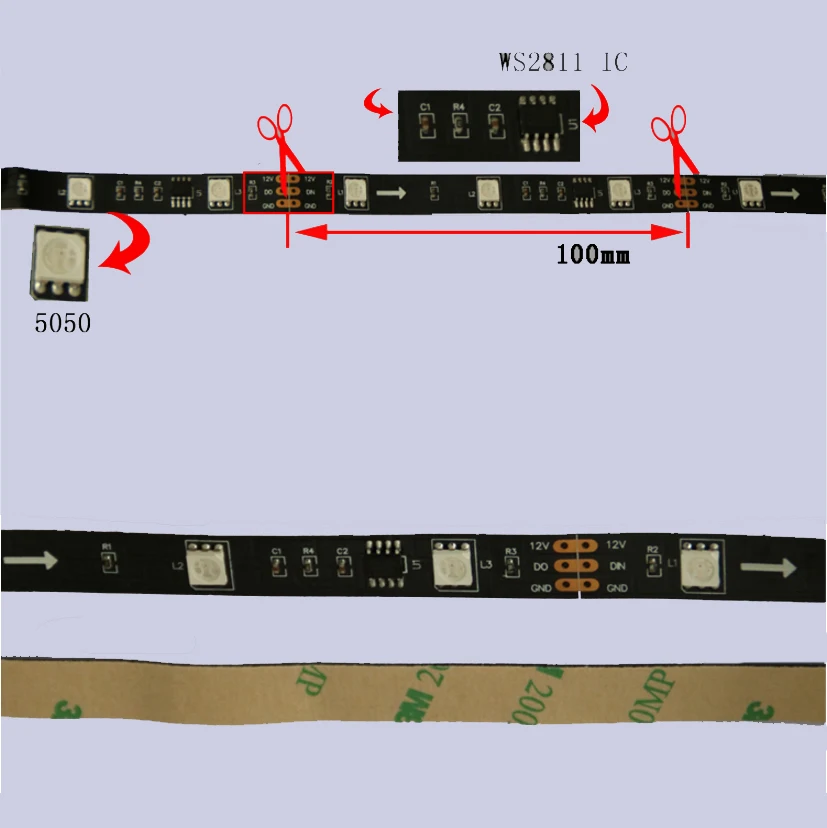 Тип светодиодный: 5050 + WS2811 ICКоличество светодиодов: 30 светодиодов/м