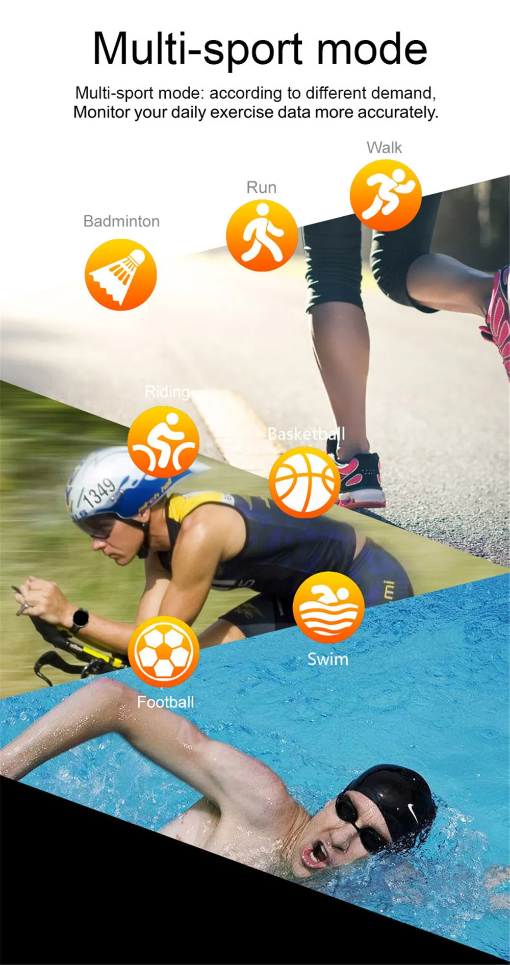 Мультиспортивные функции (бег, футбол, Скип, бадминтон, баскетбол, плавание, цикл, подъем, ходьба, шагомер, расход калорий, расчет расстояния)