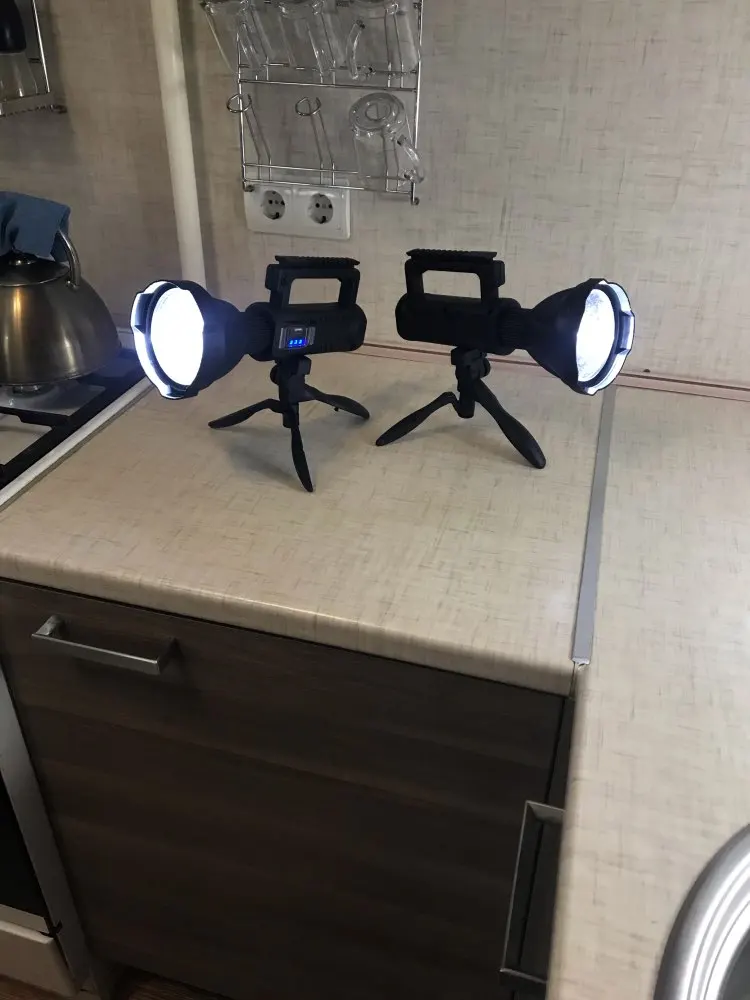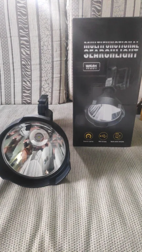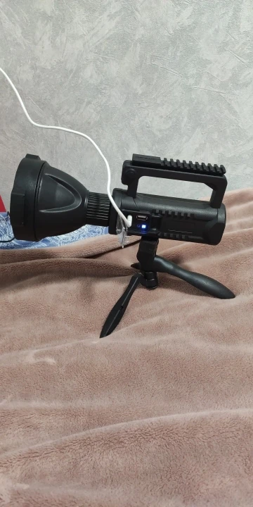 Мощный Прожектор!!! Качественный!!! Удобный в использовании!!! Можно использовать совместно с видеокамерой (есть место крепления), устанавливать на штатив охотничьего оружия (через переходник вивера, с боку), имеется функция повербанка (есть раъёмы usb и мини usb, для зарядки гаджетов, телефонов), есть индикация зарядки-разрядки прожектора!!! В Казахстан дошел чуть более месяца, очень хорошо упакован (благодаря этому, фонарь цел, хотя упаковка немного примята, спасибо перевозчикам). В комплекте имелся рукоятка-трансформер-штатив и кабель для зарядки! Полностью соответствует описанию. Фонарь просто огромный!!!!! Рекомендую, можете смело заказывать его в этом магазине!!!!!!!! Если этот отзыв оказался Вам полезен отметье лайком!