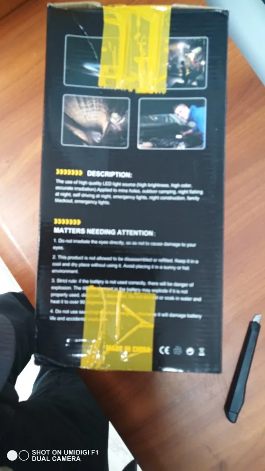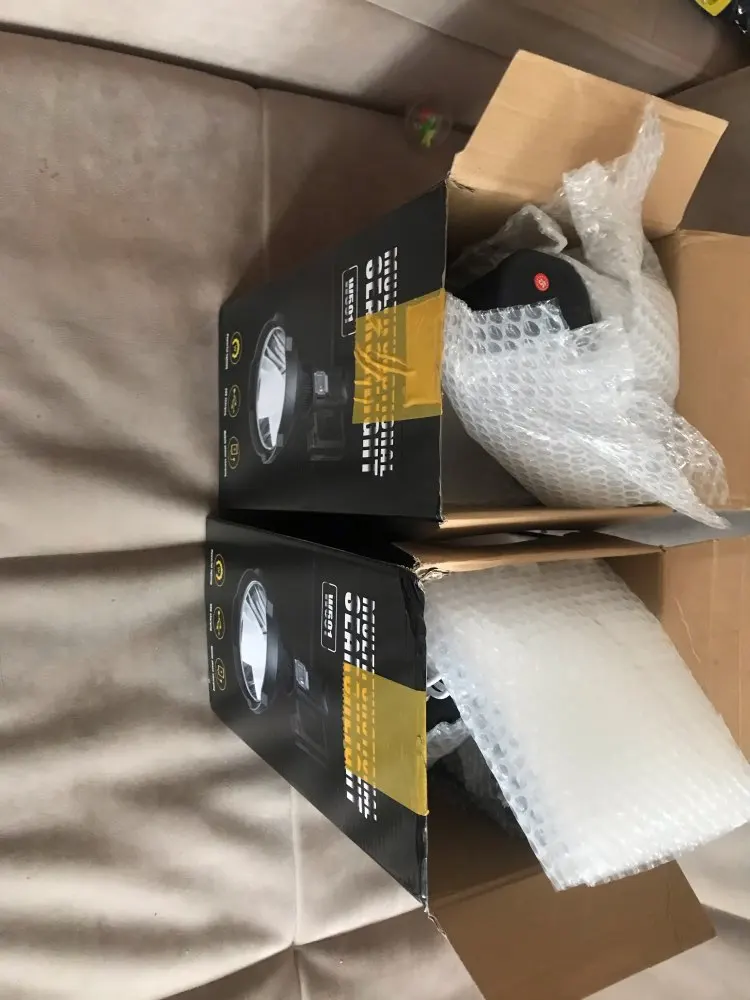 Коробка с фонарем пришла сильно помятая, но продавец надежно упаковал товар в большое количество пузырчатой пленки. Работат 4 режима. Поставил на зарядку. Светит ярко и точечно, расчитын на дальнее растояние, как брал для использования при движении на лодке в темное время. Продавцу