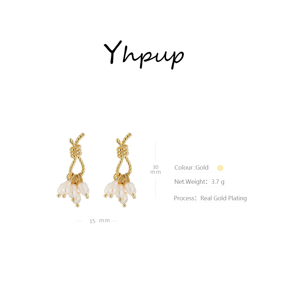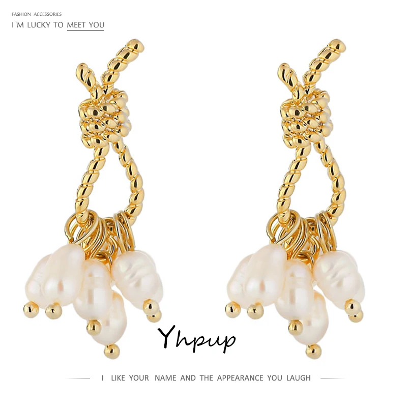 Женские серьги-подвески с пресноводным жемчугом Yhpup, элегантные Геометрические металлические серьги ручной работы, ювелирные изделия в подарок