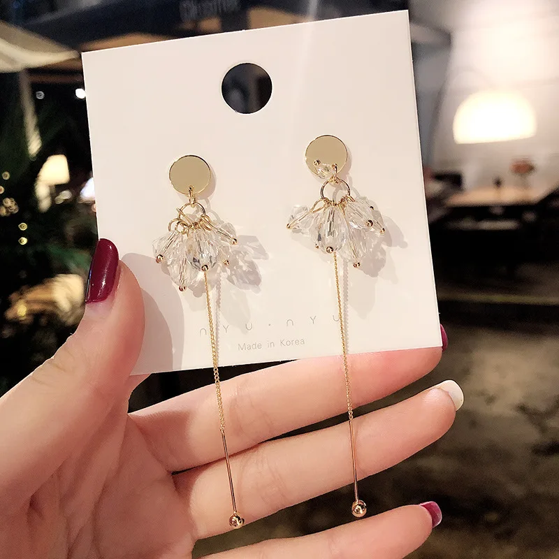 Хит продаж, висячие серьги в форме цветка с кристаллами для женщин, модные ювелирные изделия, Золотые серьги Стразы, подарок для вечеринки и лучшего друга