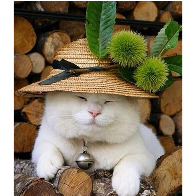 Алмазная живопись Ферма, сделай сам, 3D Алмазная вышивка, белая кошка, соломенная шляпа, мозаика, рисунок, картина по номерам