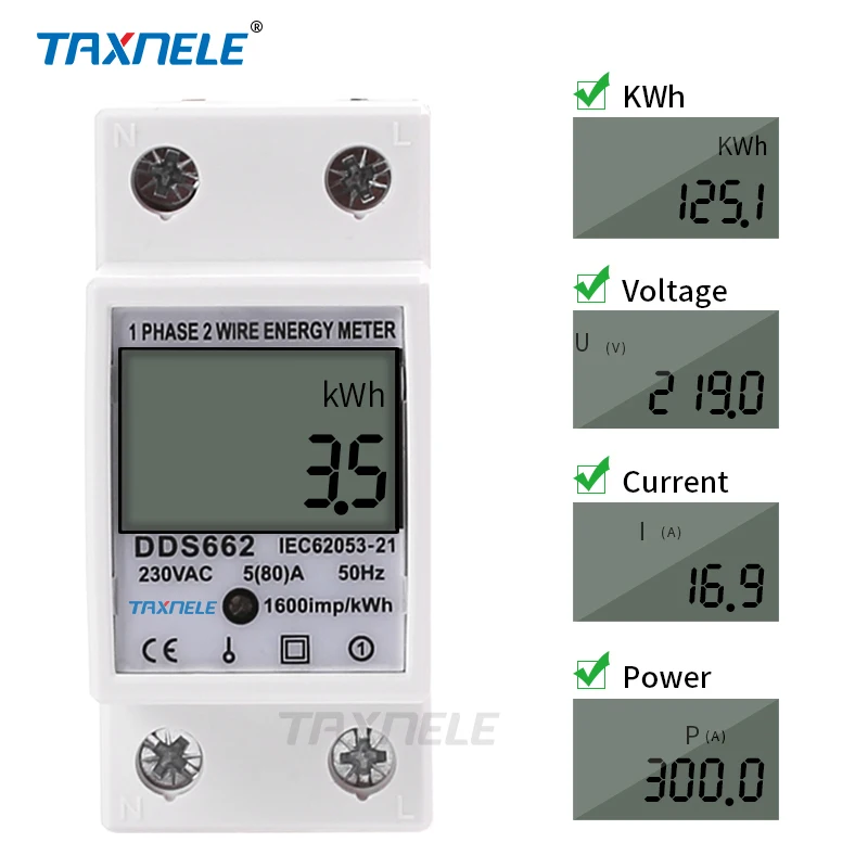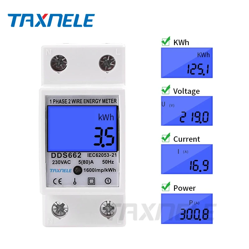 0-80A DDS662 ЖК-дисплей с подсветкой, цифровой дисплей, однофазный электронный счетчик энергии КВТЧ