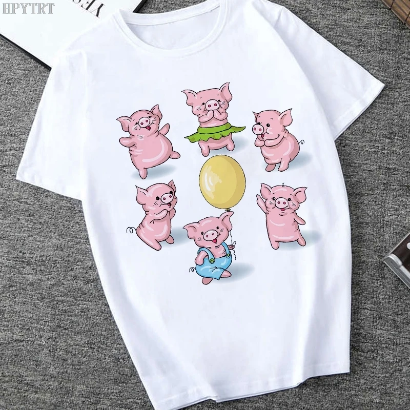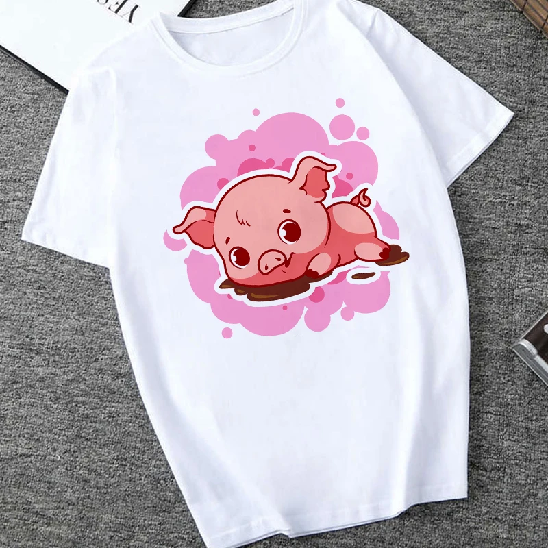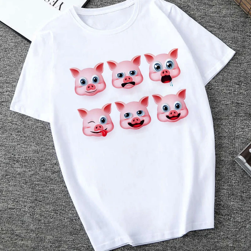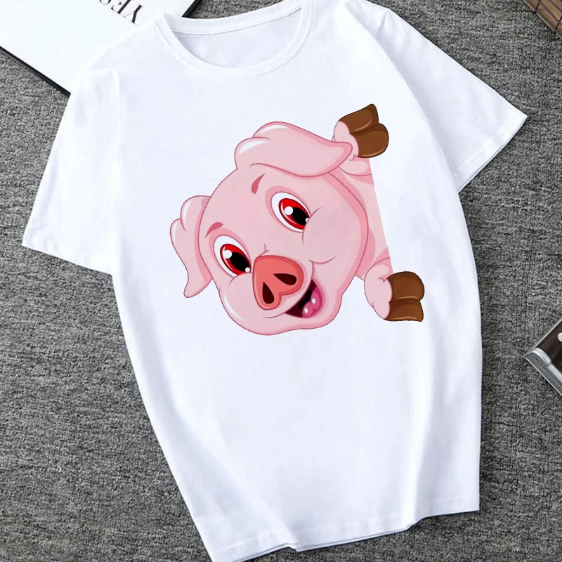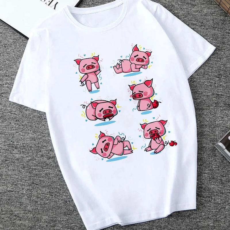 Женская футболка для отдыха, Модная белая футболка с забавным принтом свиньи, летняя футболка в стиле Харадзюку с коротким рукавом, женские топы, одежда