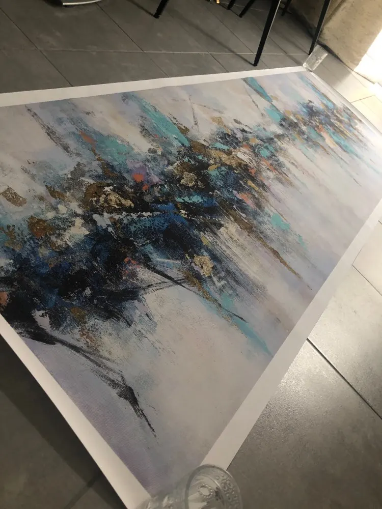 Товар пришел, упакован очень хорошо. Но сама картина отпечатана как-то неровно, прослеживаются непропечатанные участки, совпадающие с текстурой обратной стороны. Издалека этого незаметно, но если чуть поближе смотришь - сразу бросается в глаза.
