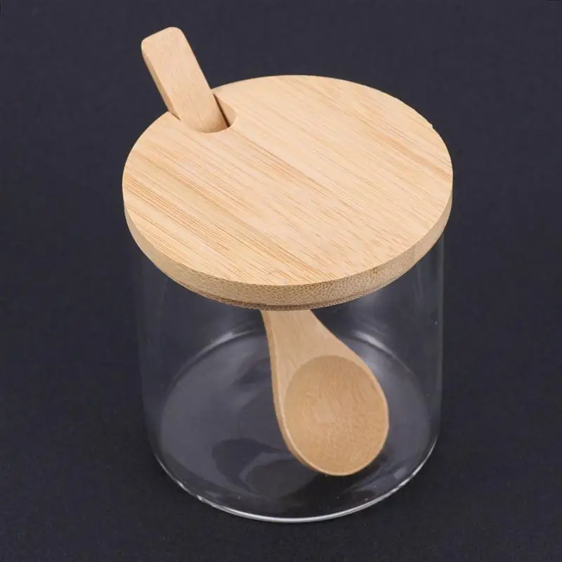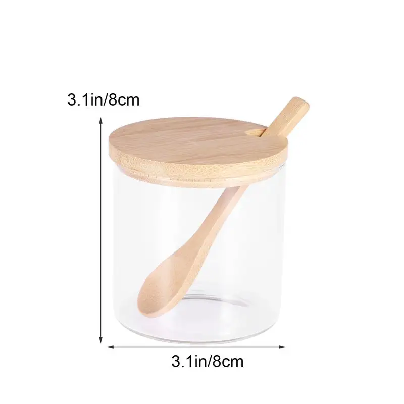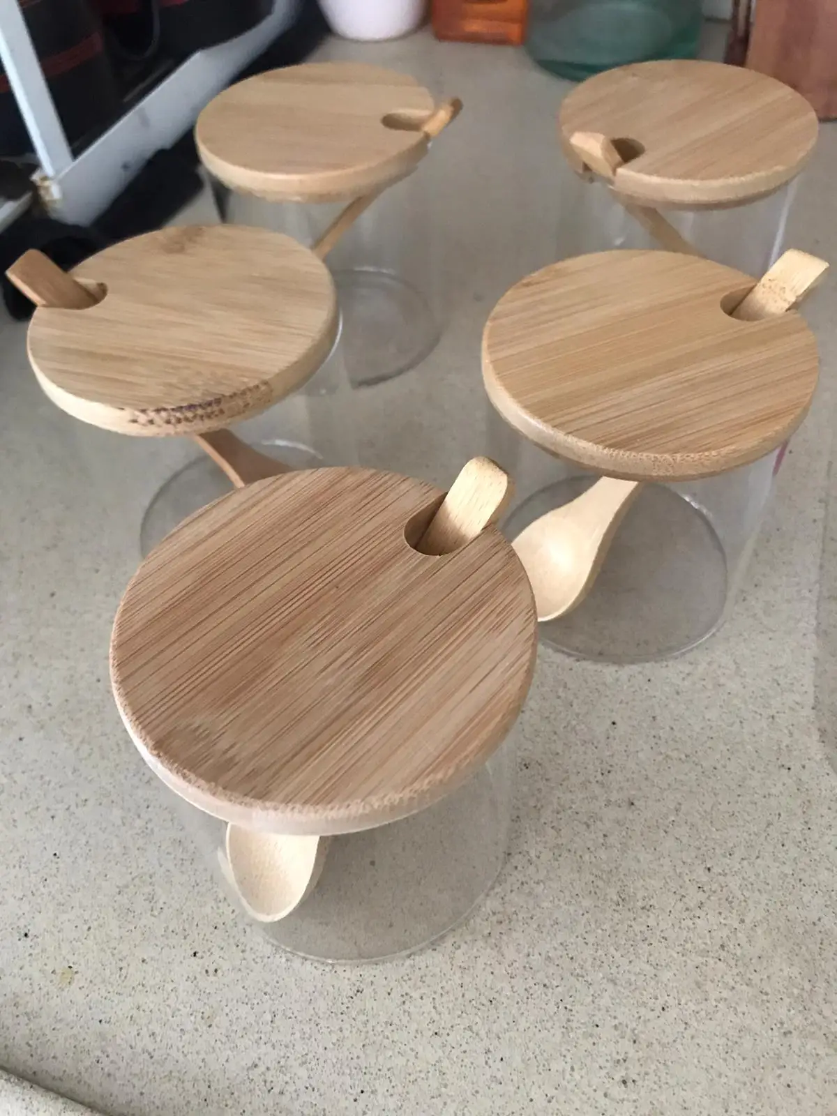 1 Набор стеклянных банок для специй, банки для приправ контейнеров для хранения продуктов, с бамбуковой крышкой и деревянной ложкой для чая