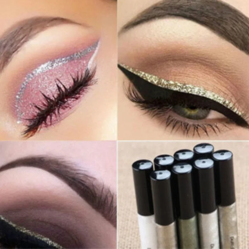 Жидкая подводка для глаз с блестками, 8 цветов, водостойкий пигмент, макияж для женщин, белый и коричневый цвета, блестящая подводка для глаз, быстросохнущая косметика