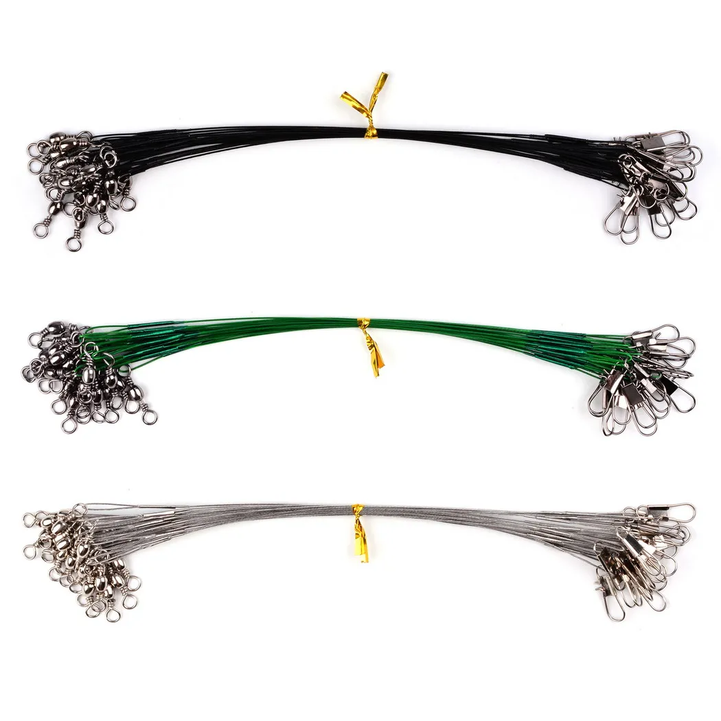 20 шт./лот, поводок из стальной проволоки с вертлюгом против укусов, леска 15/20/24/30 см, рыболовные аксессуары, 3 цвета, Olta, свинцовый поводок