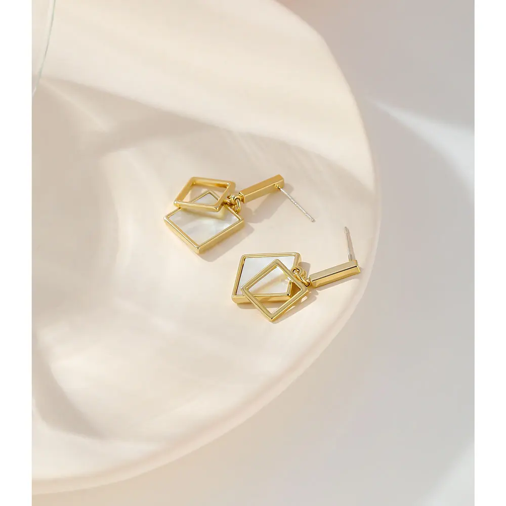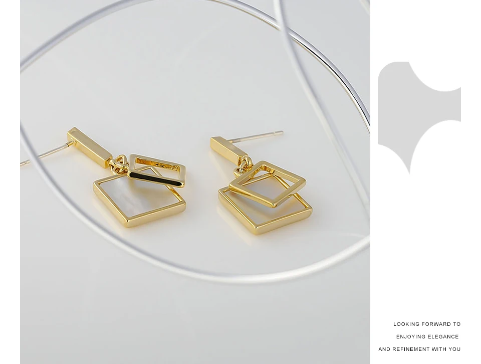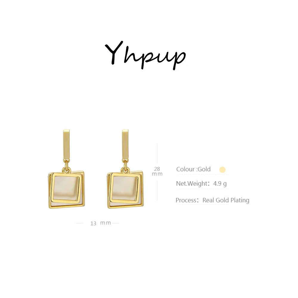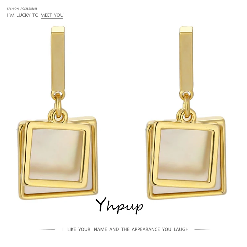 Модные серьги Yhpup из натуральной ракушки, квадратные геометрические трендовые длинные серьги, золотые металлические серьги, ювелирные изделия для женщин, подарок Донне