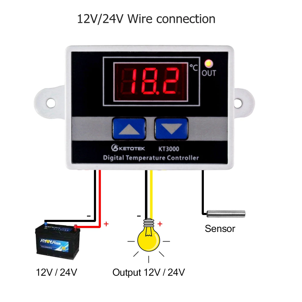 ОписаниеДиапазон измерения температуры/контроляДатчик NTC: - 50 ~ 110 °C датчик типа K: 0 ~ 450 °C (пожалуйста, выберите тот, который вам нужен)Точность измерения температуры: +/-0,2 °CТочность контроля температуры: +/-0,1 °CИзмерительный вход: NTC10K L = 1 м водонепроницаемый зондВходная мощность: 110-220 В переменного тока/12 В/24 ВВыходная мощность: 110-220 В переменного тока/12 В/24 В (зависит от того, который вы выбираете)Тип выхода: прямой выходВыходная мощность: макс. 10АРазмер внешнего вида: 60*45*31 мм