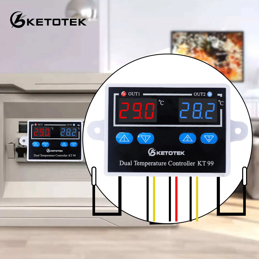 Цифровой термостат KT99, регулятор температуры с микрокомпьютером и датчиком NTCK, 220 В, 12 В, 24 В переменного тока, 10 А