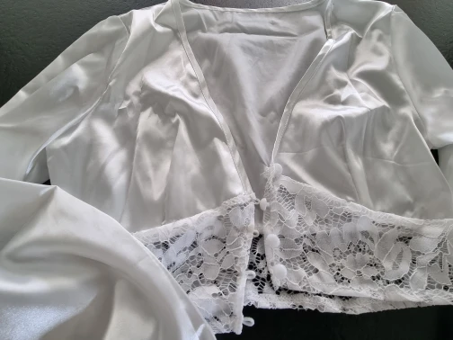Очень красиво, мне очень понравилось, но оно очень и очень уменьшено, я заказал размер XL, и я не закрываюсь, руки и спина все хорошо. Я решил положить немного кружева спереди или сзади или, возможно, продать их :( но это определенно хорошая одежда и стоит цена