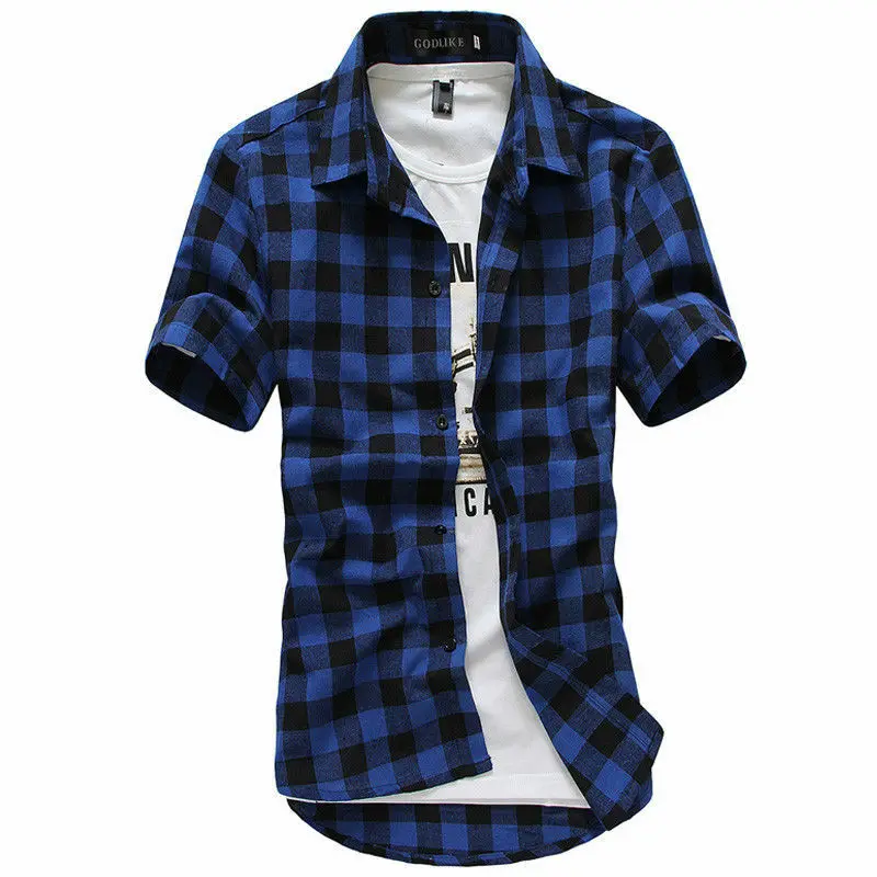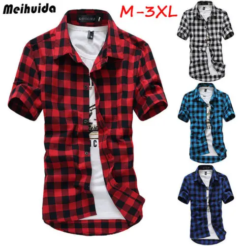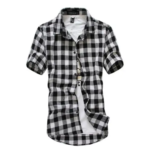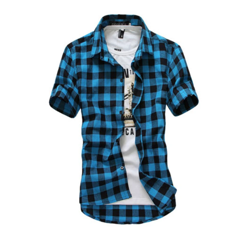 Футболка мужская с короткими рукавами, Повседневная рубашка в клетку, с воротником с лацканами, на пуговицах, размера плюс M-3XL, на лето