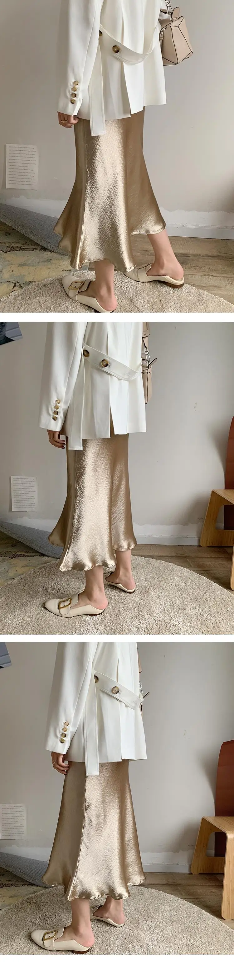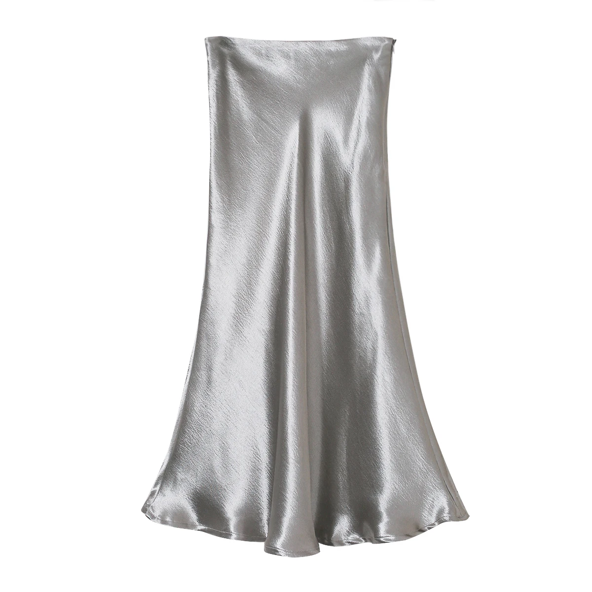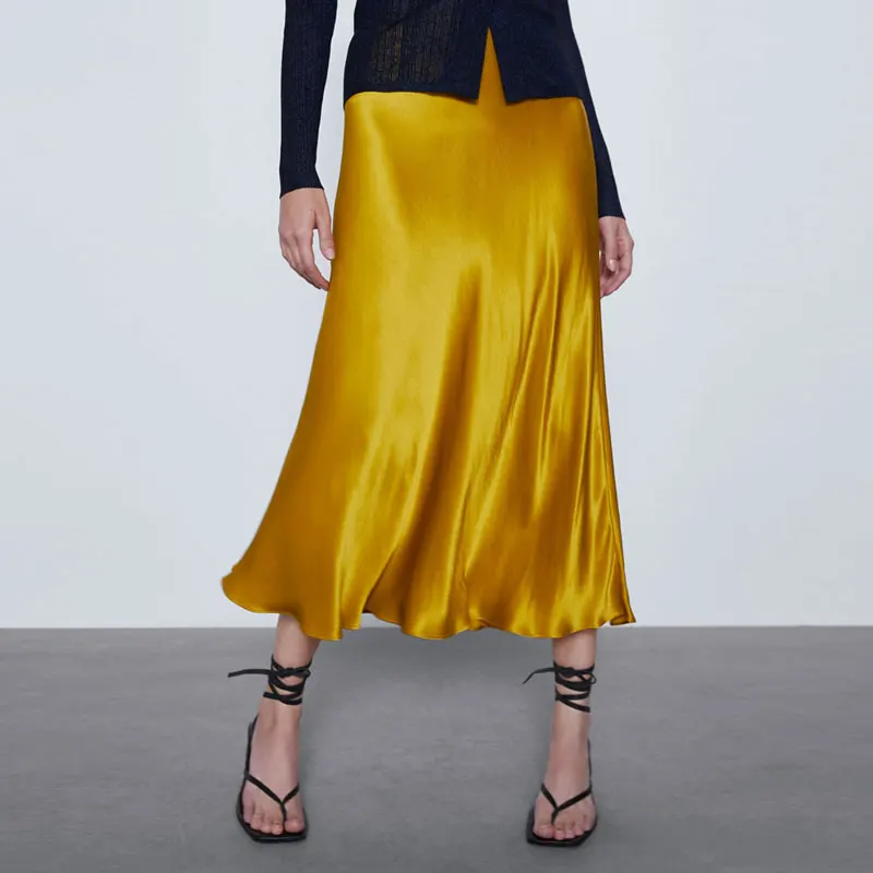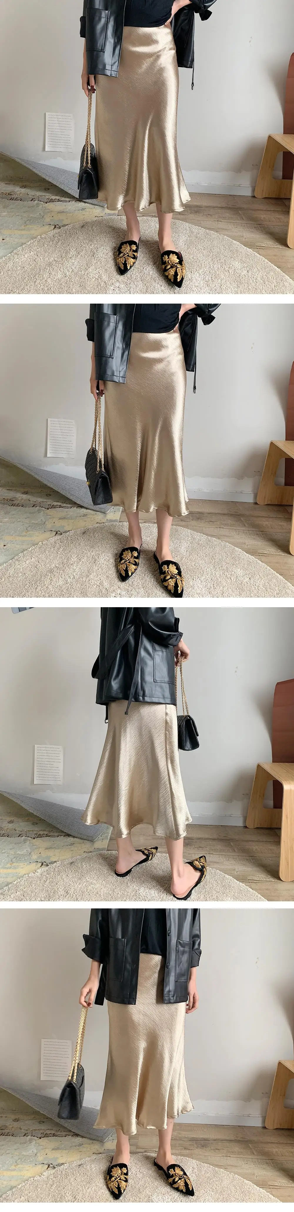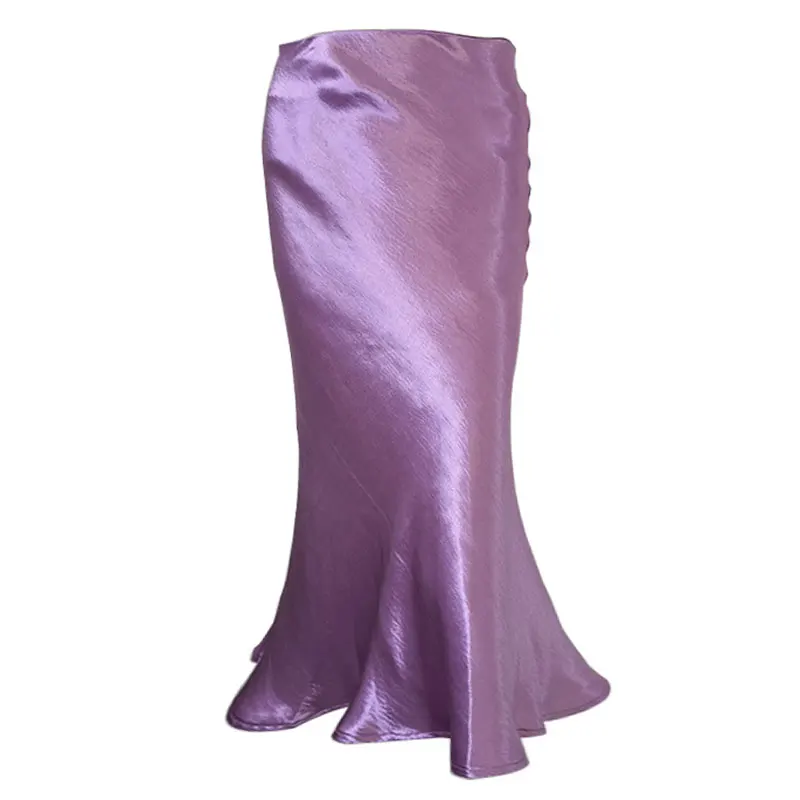 Удачи в 2021 летние глянцевая фиолетовый желтый Атлас трубы Высокая талия юбка цвет серебристый, Золотой длинная юбка металлик Цвет вечерние юбка
