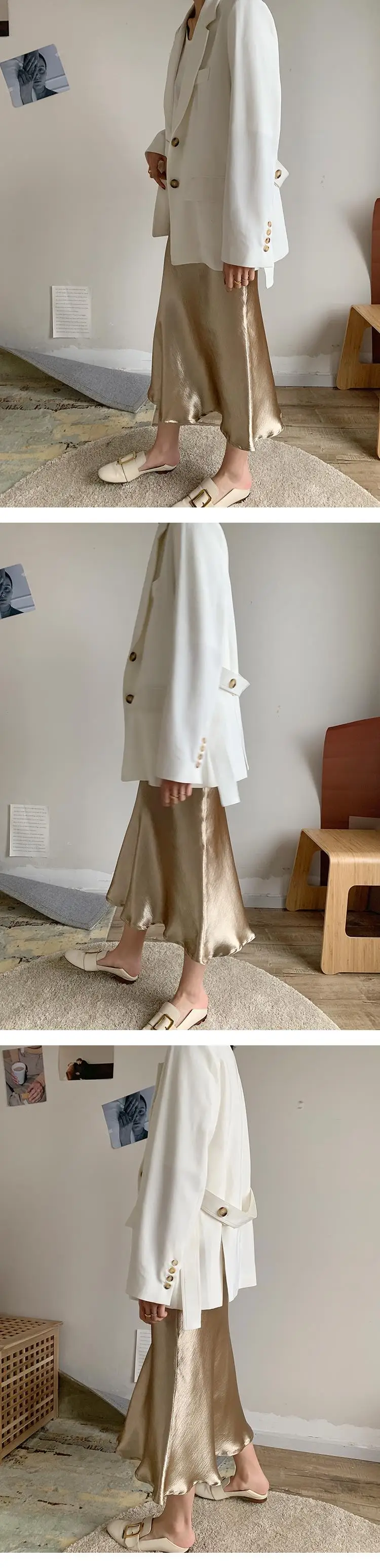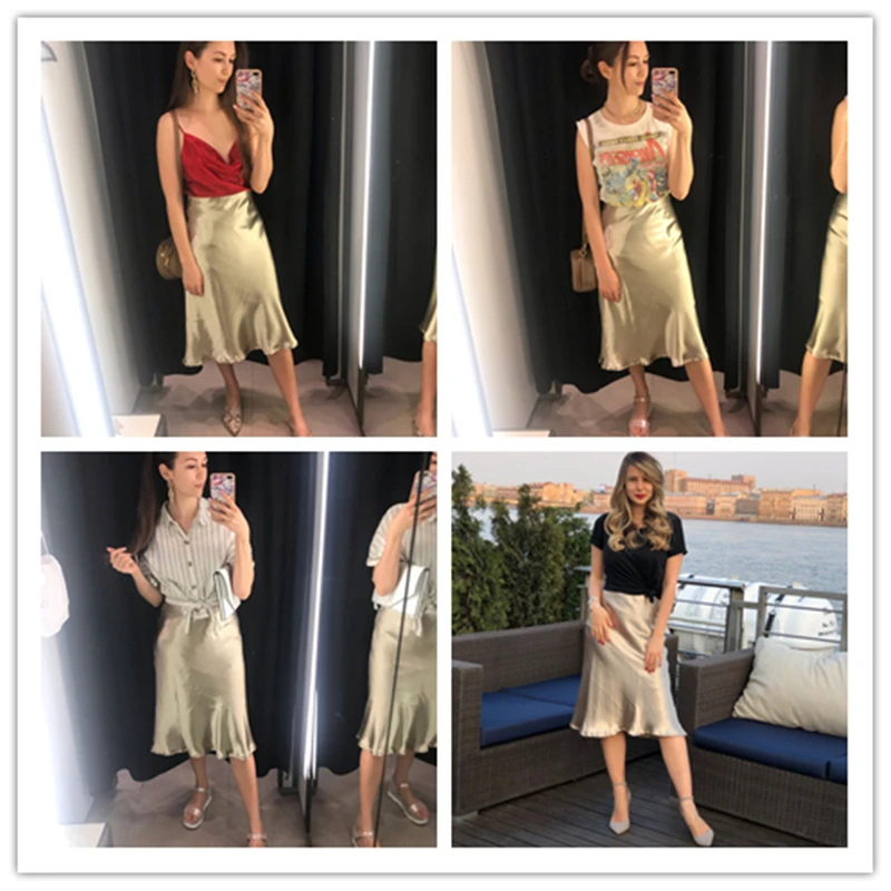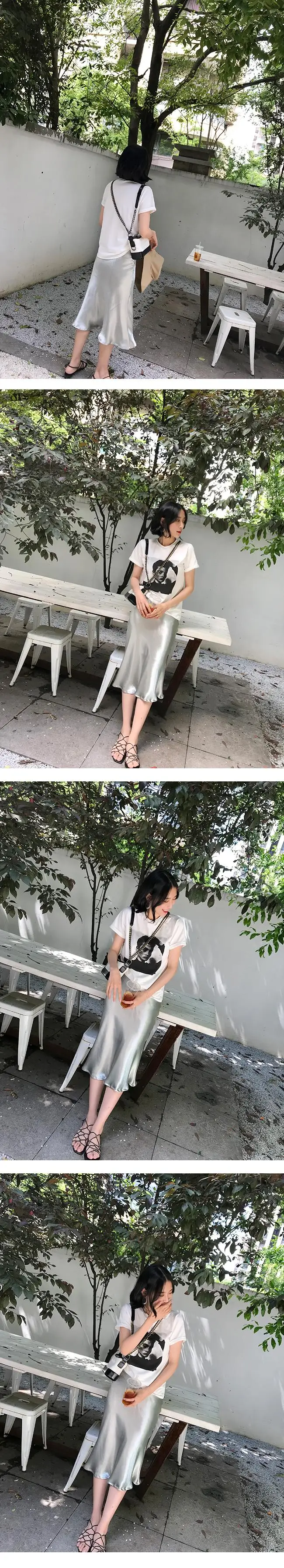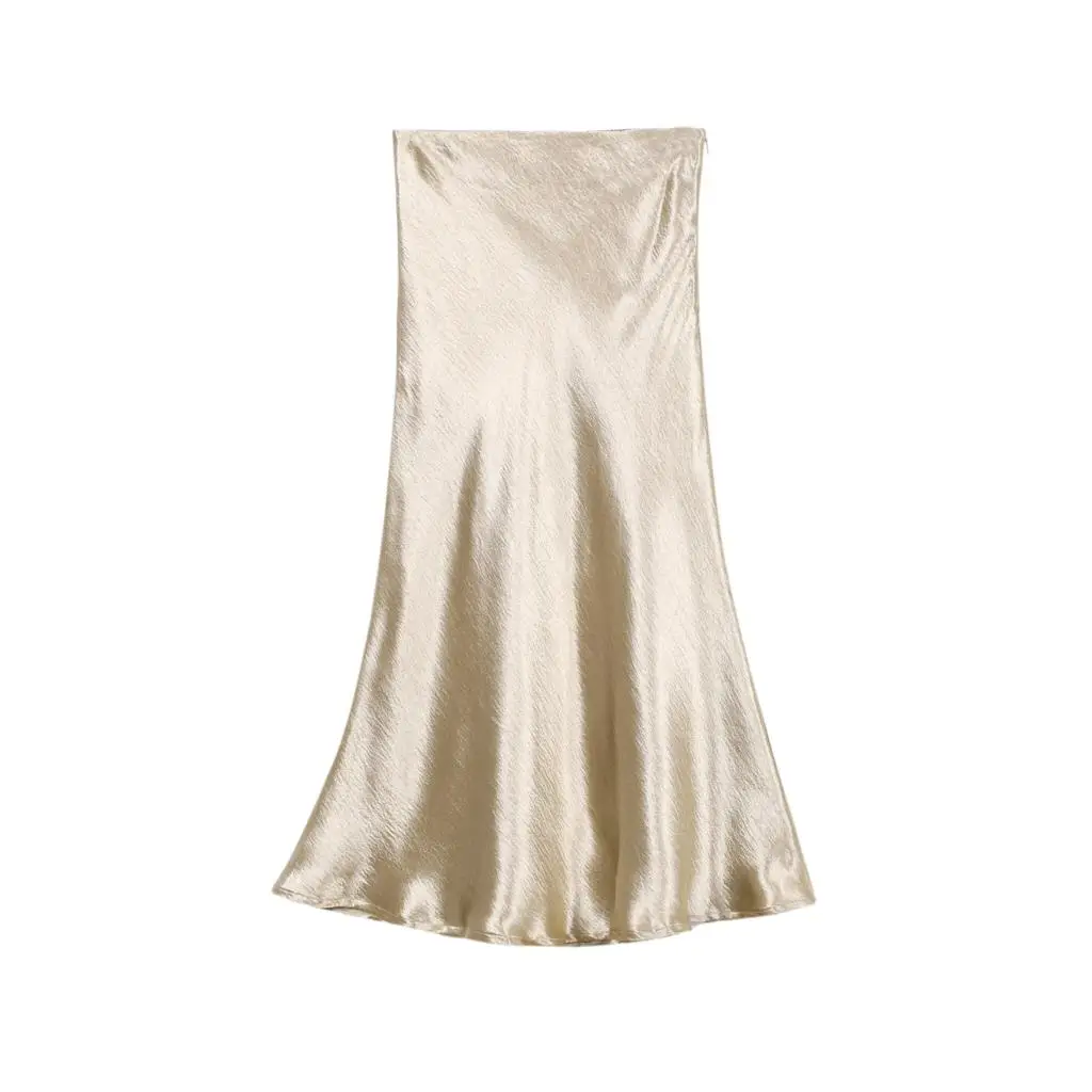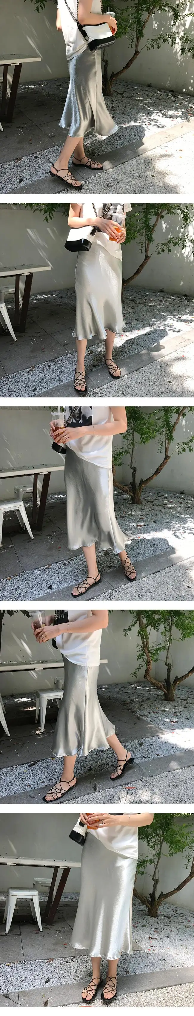 Удачи в 2021 летние глянцевая фиолетовый желтый Атлас трубы Высокая талия юбка цвет серебристый, Золотой длинная юбка металлик Цвет вечерние юбка