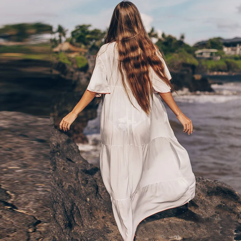 Белое Сетчатое пляжное платье, женская летняя модель, женская накидка, длинная туника для женщин, пляжная одежда, saida de praia