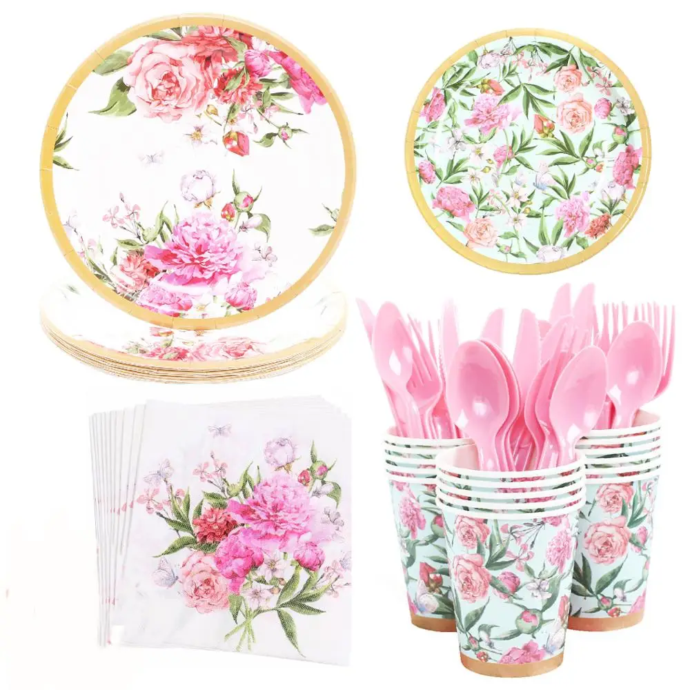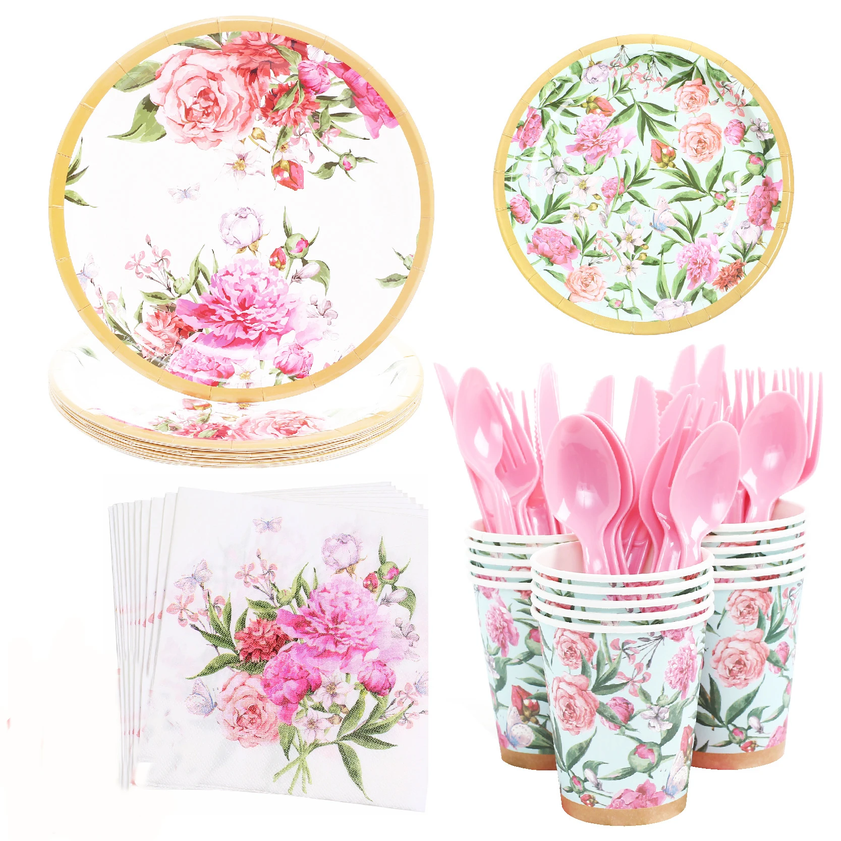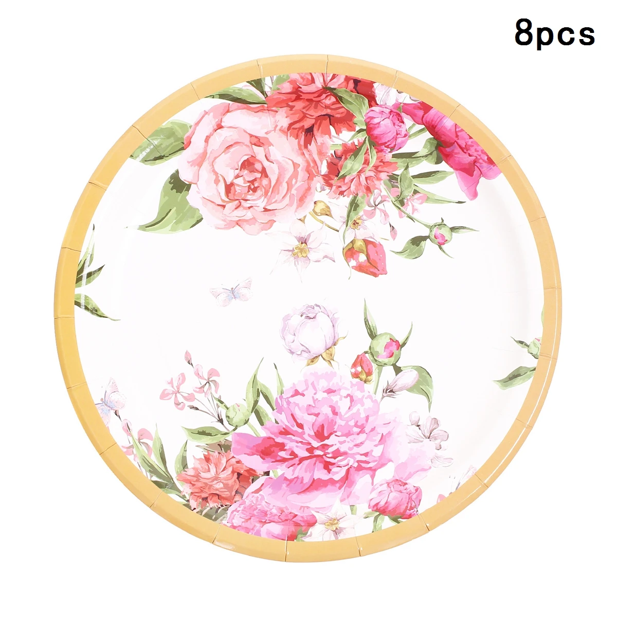 Гавайская одноразовая посуда для сада, бумажная тарелка с цветами, салфетка для летнего дня рождения, свадьбы Вечерние вечеринки