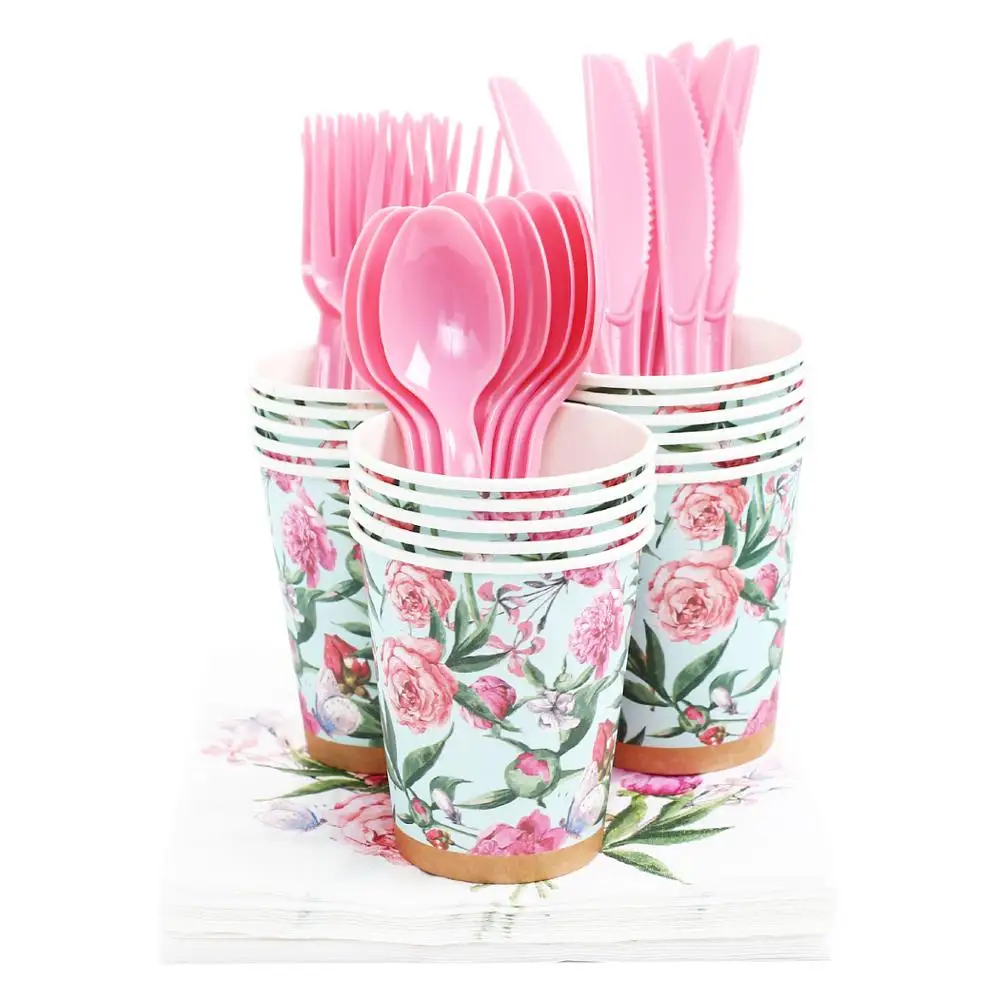 Набор одноразовой столовой посуды В Гавайском саду, ретрол, цветок,...