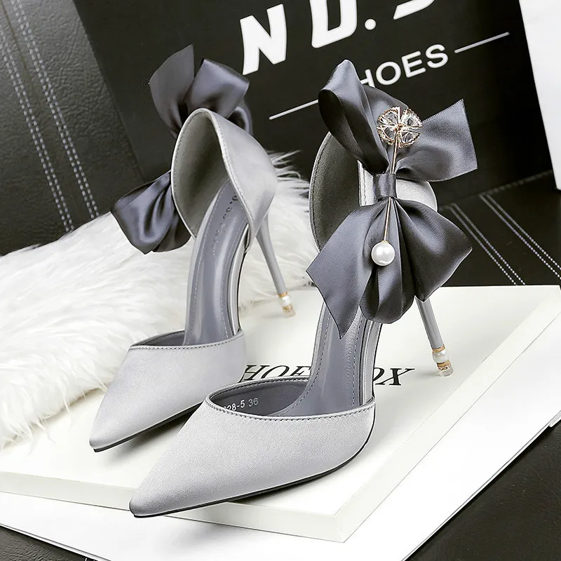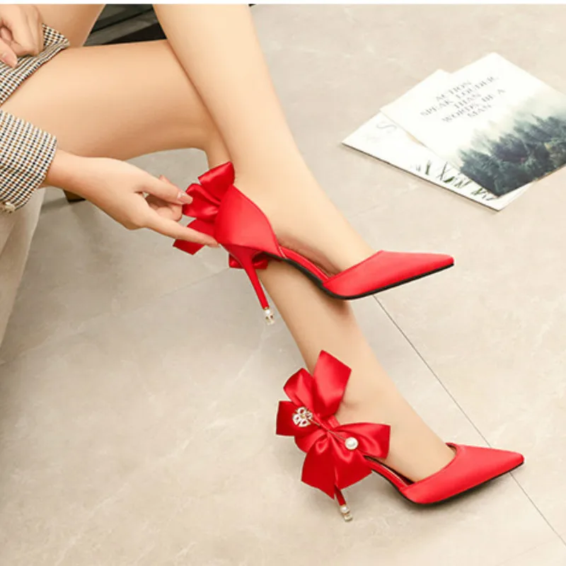 Женские свадебные туфли Thenew, однотонные туфли с бантом на высоком каблуке, без застежки, с закрытым носком, на тонком каблуке