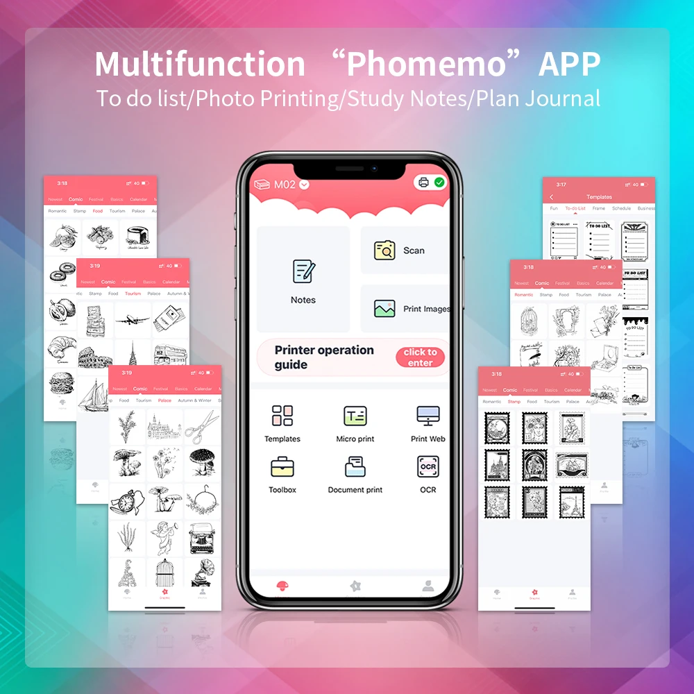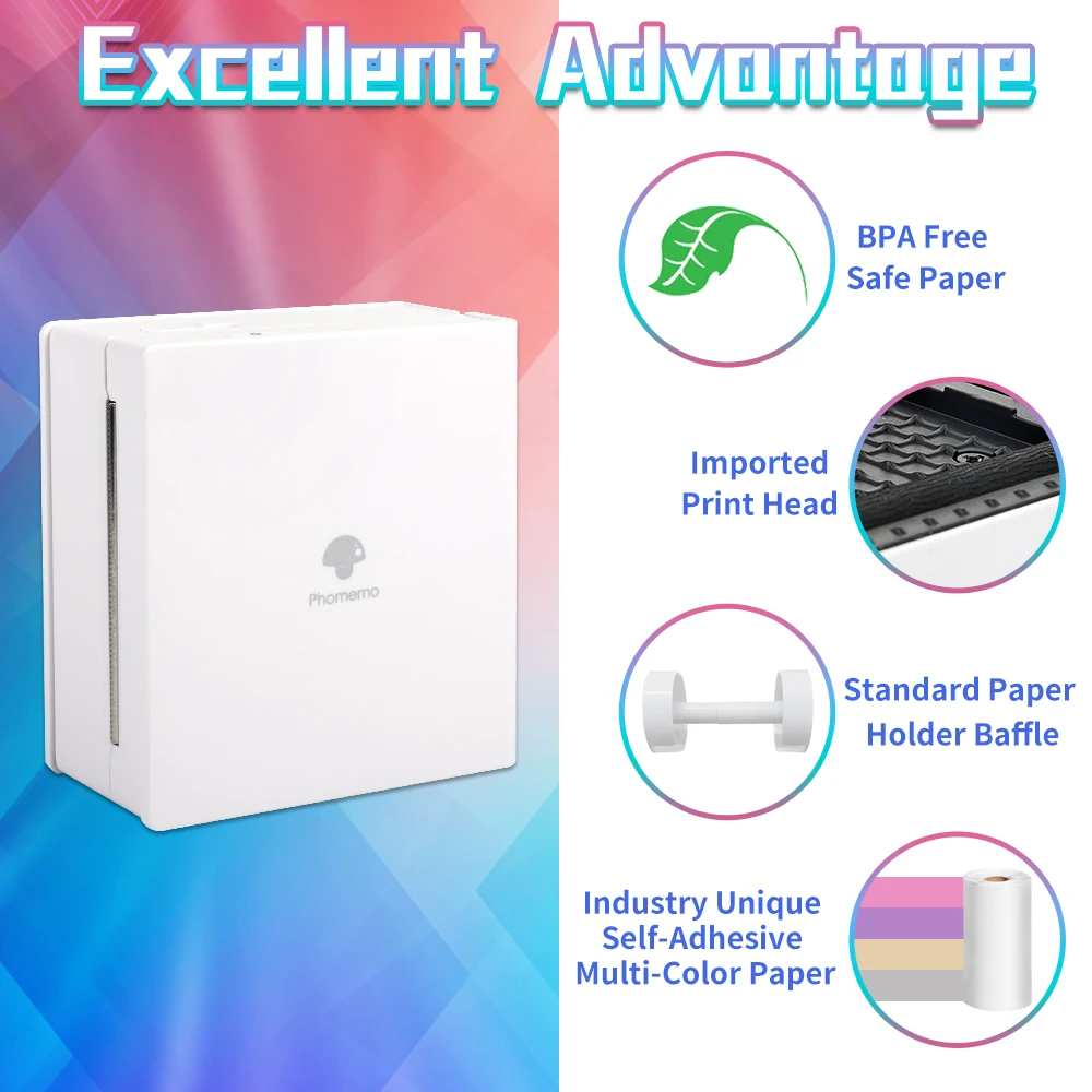 Особенности:✔Соединение Bluetooth 4,0. Мини-принтер Phomemo M02 совместим со смартфонами и планшетами. Вам просто нужно загрузить приложение на свое устройство, а затем наслаждаться путешествием печати с Phomemo. Подходит для Android 4,0, Для IOS8.0 или выше.✔Портативный размер и Быстрая зарядка ----- модный принтер и компактный дизайн, размер: 3,38*3,22*1,65 дюймов, портативный принтер легко помещается в карман рубашки. 5В-2A делает зарядку более быстрой. Непрерывной работы в течение 24 часов, 1,5 часов Время зарядки и 1 неделю в режиме ожидания.✔Высокое разрешение ----- Этот карманный принтер использует 5V2A tecnology, что делает ваше качество печати более выдающимся, чем 5V1A. Вы можете найти более интересные вещи из четких изображений.✔Мощное приложение ----- приложение Phomemo M02 включает в себя множество функций, таких как печать этикеток, заметок, изображений и веб-страницы. В центре шаблонов есть много шаблонов, и все они бесплатны. Вам просто нужно распечатать все, что вы хотите. Окр-Оптическое распознавание символов, вы можете извлечь текст изображения, снимая и свободно редактировать извлеченный текст.