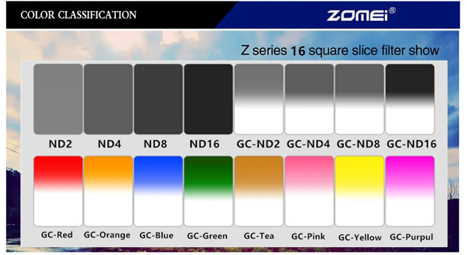 Градиентный квадратный фильтр Zomei 150*100 мм G.ND2ND4ND8ND16, фил...