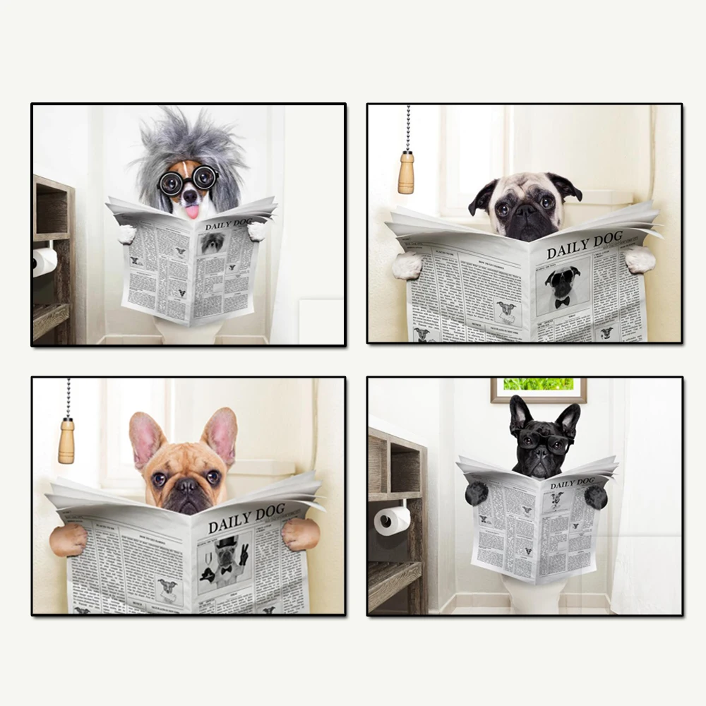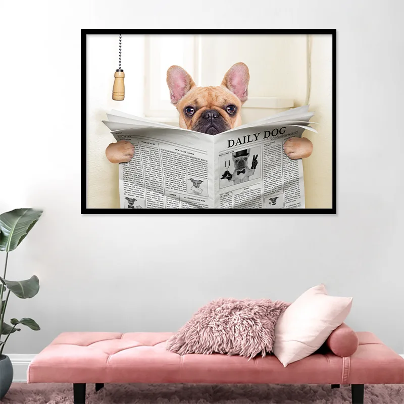 Собака чтение газета холст картины животные забавная собака туалет ...