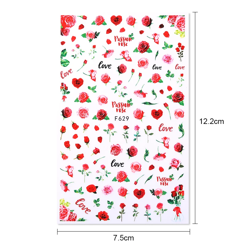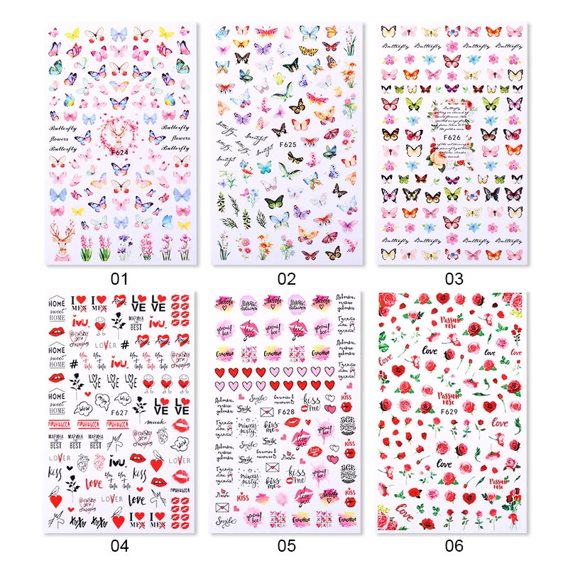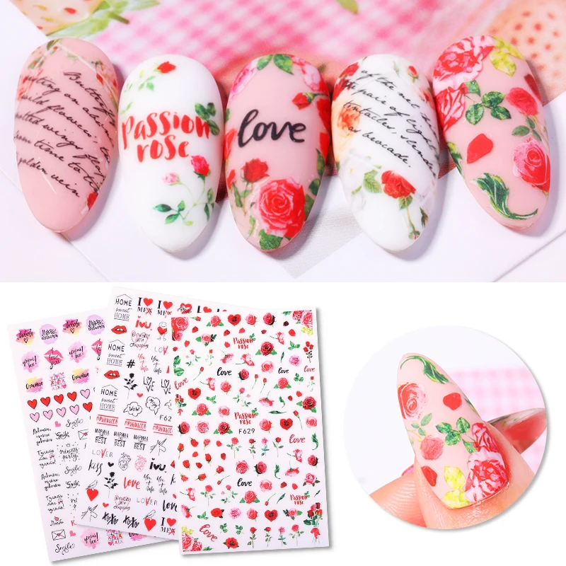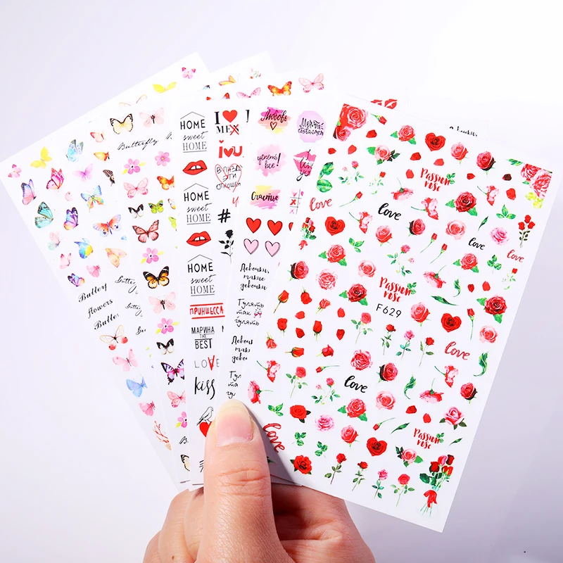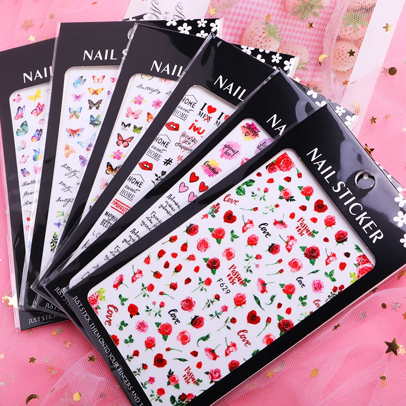 3D-Наклейки для ногтей с бабочками, переводные наклейки для ногтей, переводные наклейки для ногтей с цветными цветами розы, украшения для маникюра