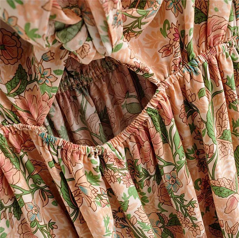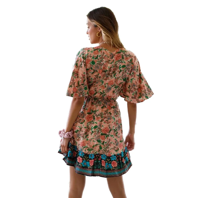 Новое Элегантное женское пляжное мини-платье с цветочным принтом, женское сексуальное короткое платье с v-образным вырезом в стиле бохо, вечерние нее цветочное мини-платье, Пляжное Платье Deess