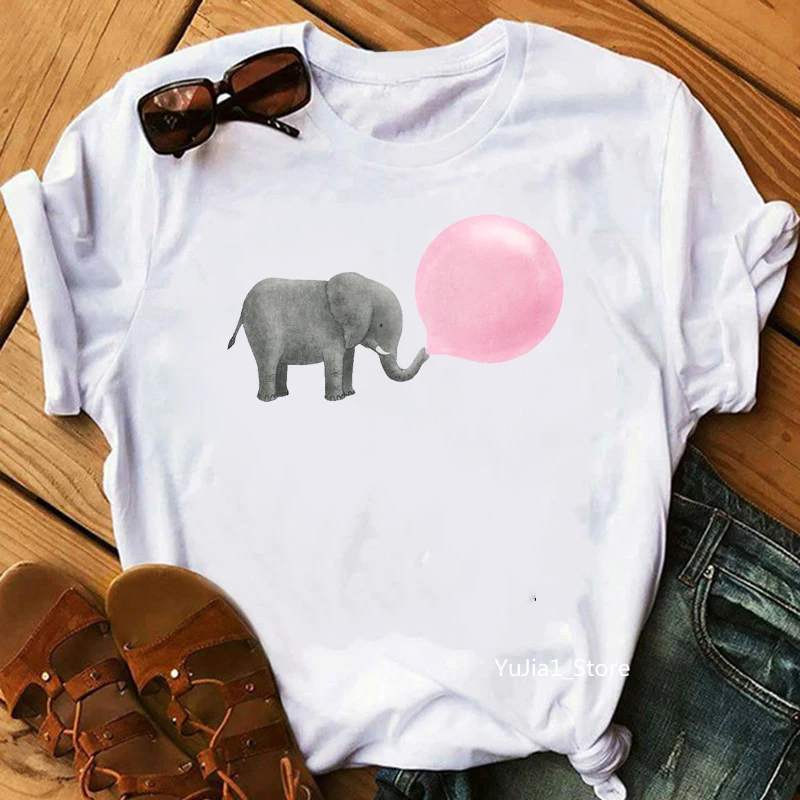 Футболка женская с принтом животного, милая рубашка с принтом розов...