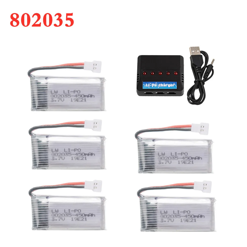 3,7 В 450 мАч Lipo аккумулятор + зарядное устройство для X4 H107 H31 KY101 E33C E33 U816A V252 H6C RC дроны, запасная часть обновленная батарея 802035