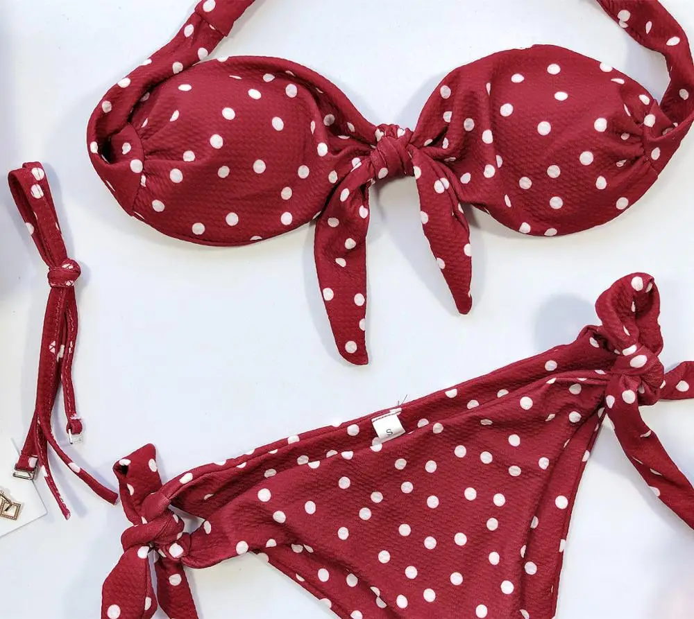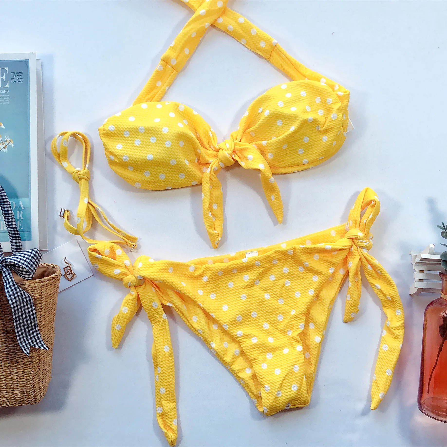 Однотонный купальник бикини в горошек с заниженной талией, европейский и американский пикантный бикини пляжный купальник бикини