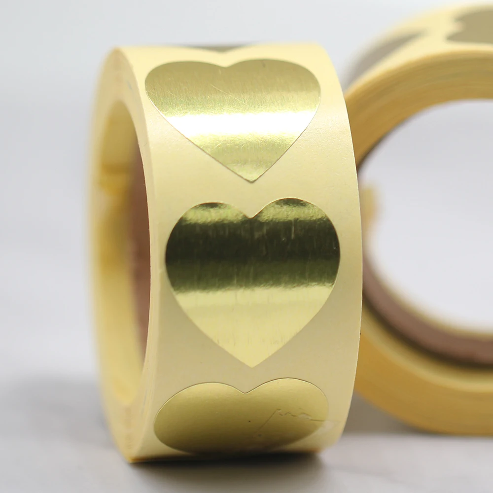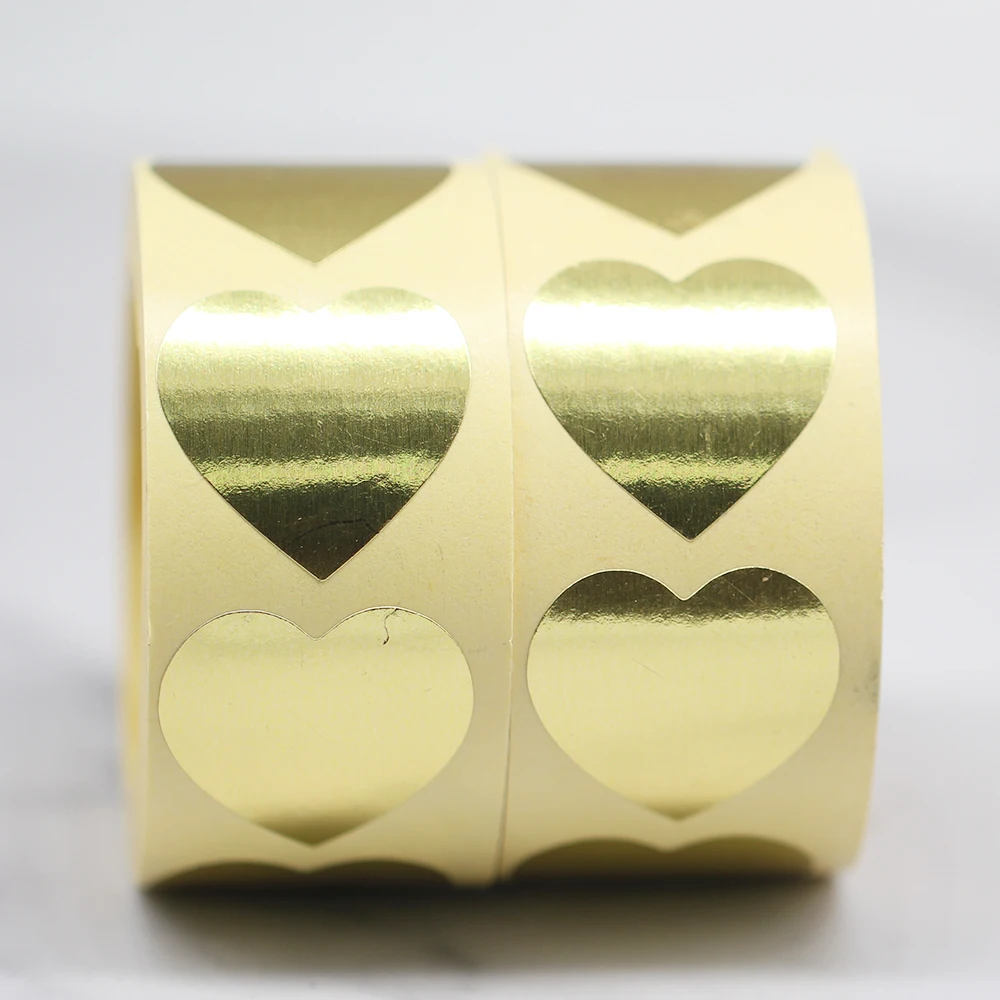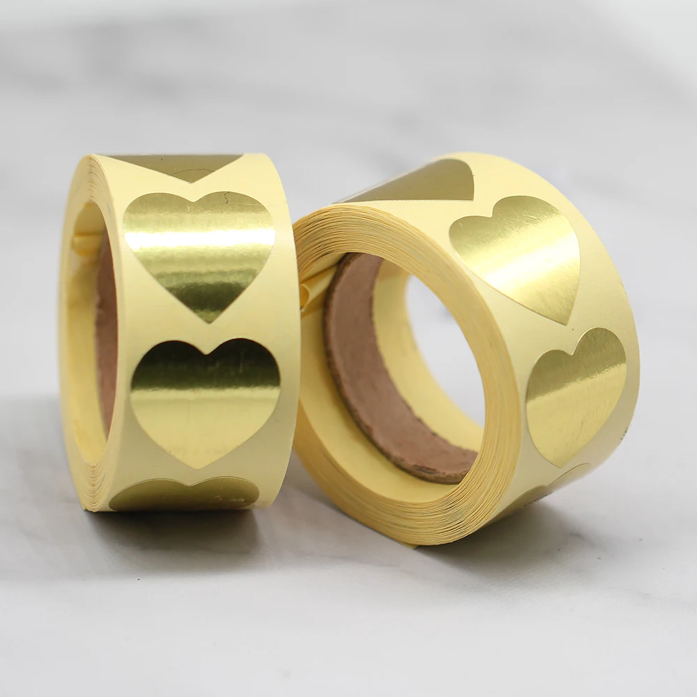 Круглая позолоченная наклейка в виде сердца, герметизирующая наклейка, канцелярские принадлежности, конверты, коробка для украшения торта, 500 шт.рулон