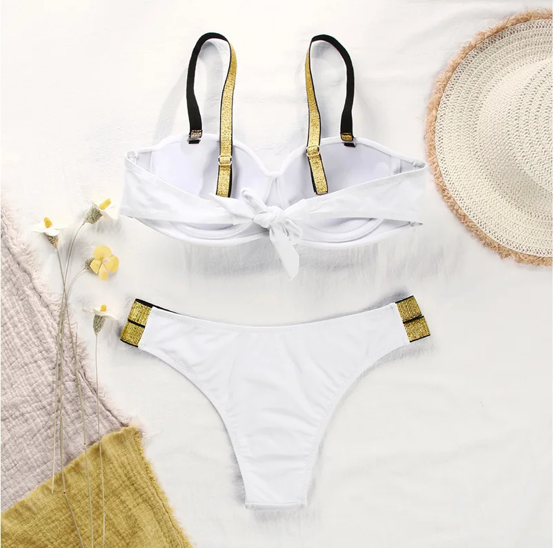 Комплект бикини с перекрестной грудью, купальные костюмы из двух пр...