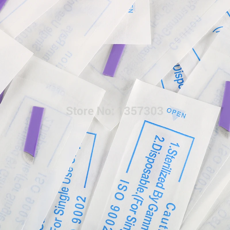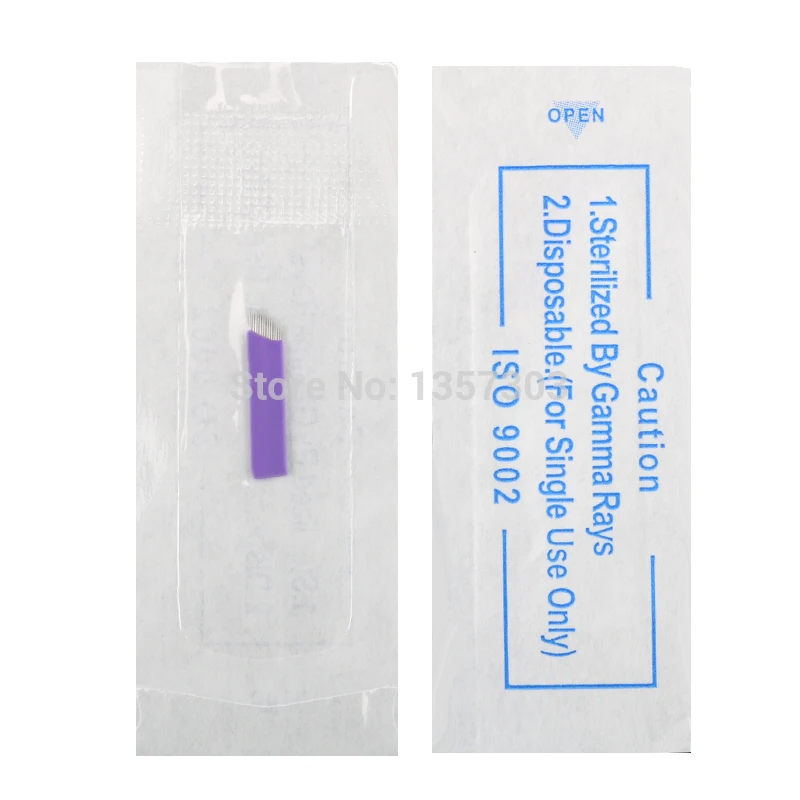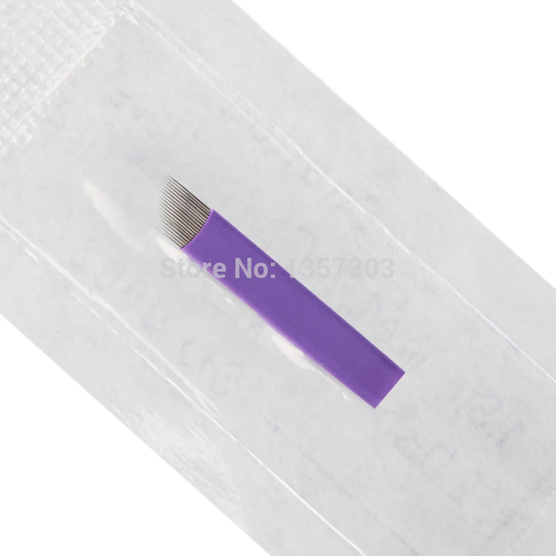 100 шт. супер острые 0,2 татуировки иголки, аксессуары для шитья Перманентный макияж стерилизованные фиолетовые 18 контактов лезвие для микроблейдинга бровей Lip-B5