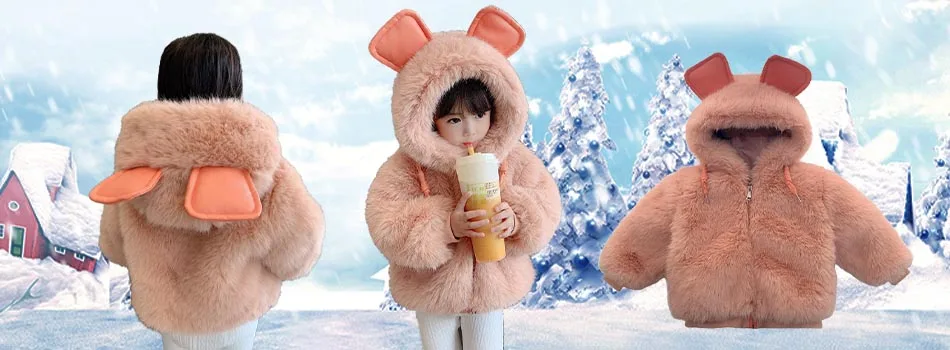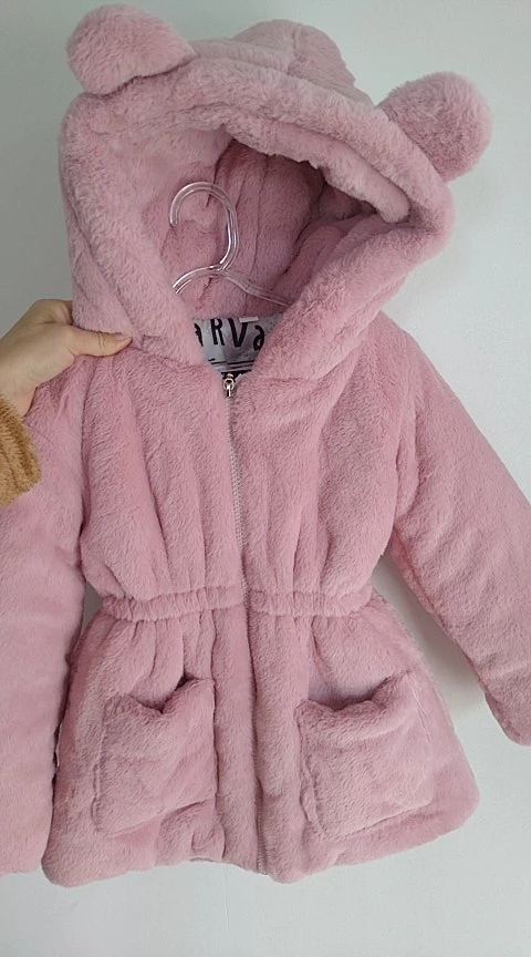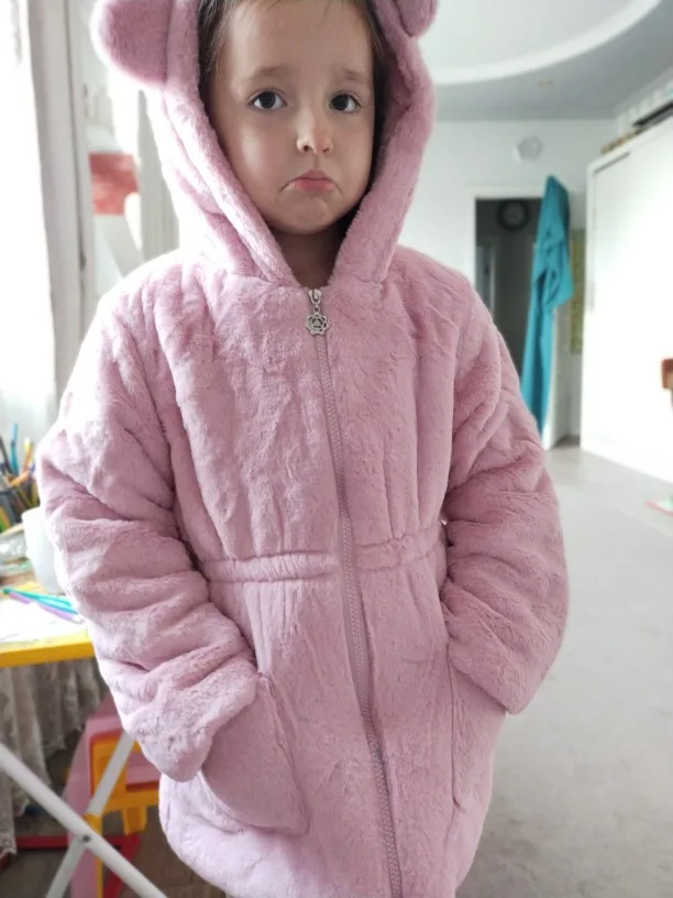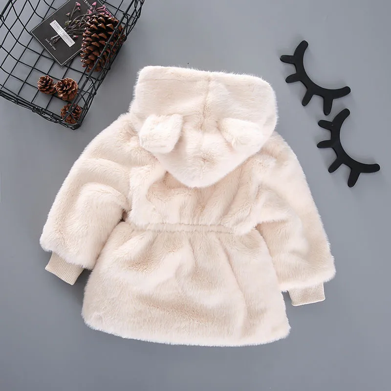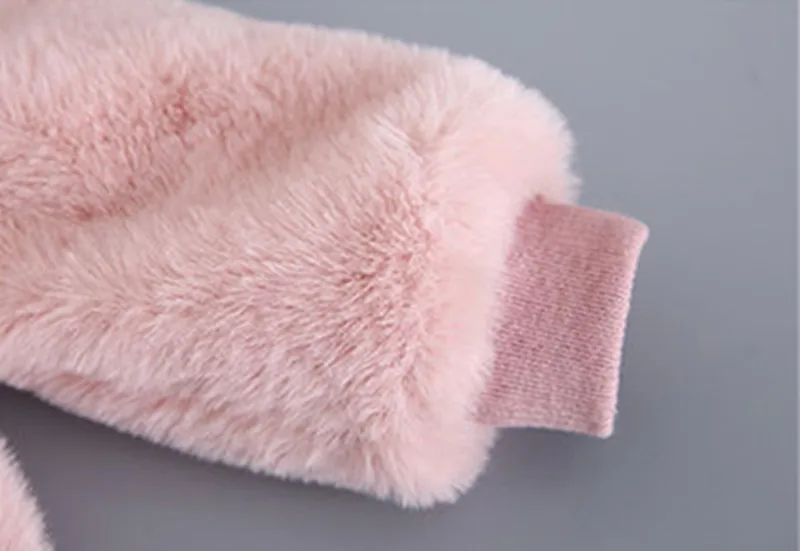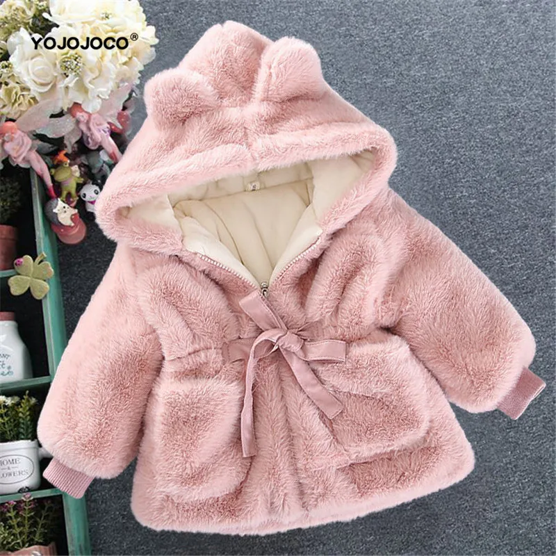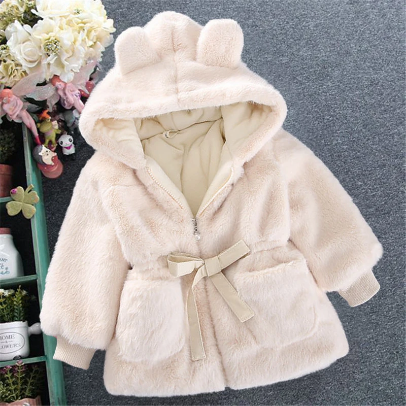 Одежда для маленьких девочек, зимнее теплое меховое пальто, новый шерстяной свитер для девочек, меховая стеганая куртка с большими ушками, утепленное стеганое хлопковое Детское пальто