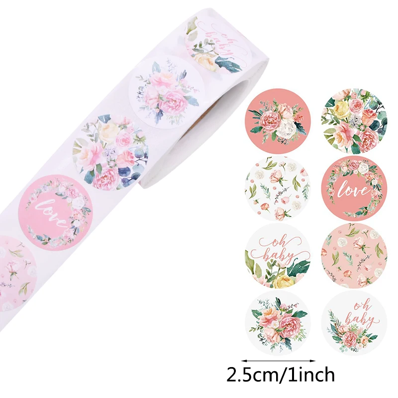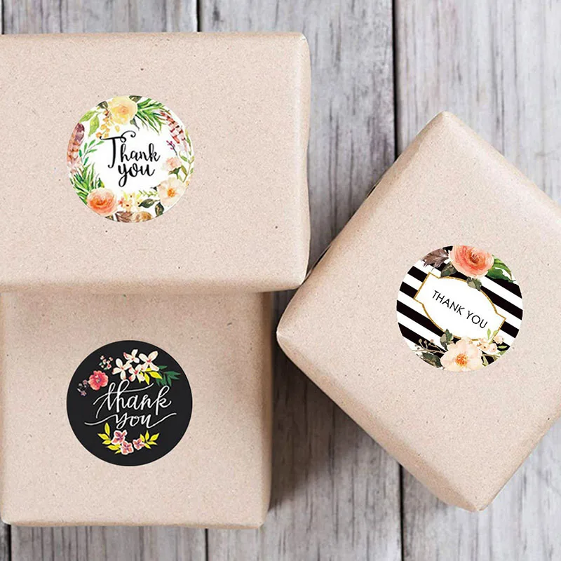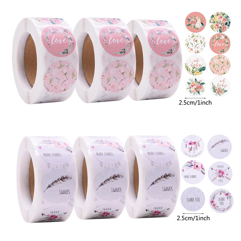Наклейки для конвертов, цветочные, 500, наклейка спасибо, бумажные этикетки наклейки, канцелярские товары ручной работы шт.рулон