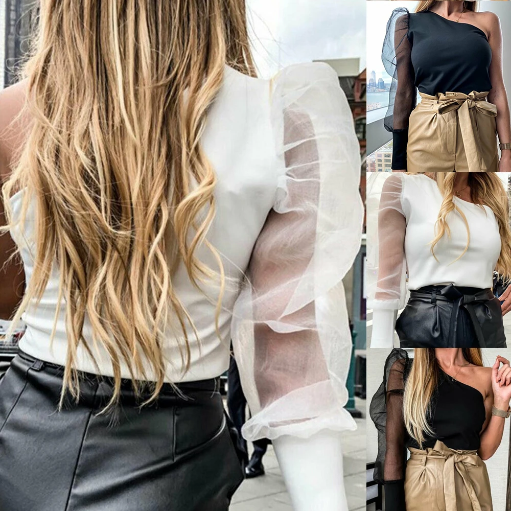 Новая женская сетчатая блузка, прозрачный топ с пышными рукавами, женская рубашка, сексуальные топы, женская одежда, облегающая индивидуализированная рубашка, Топ