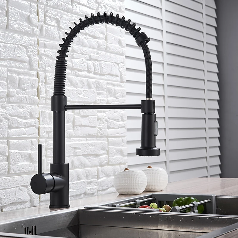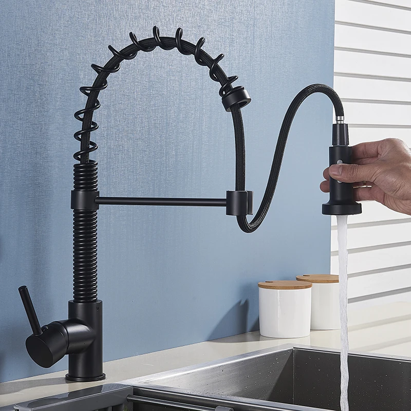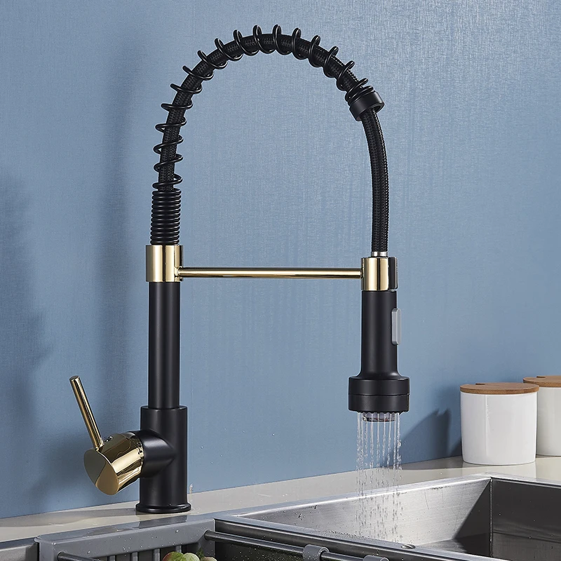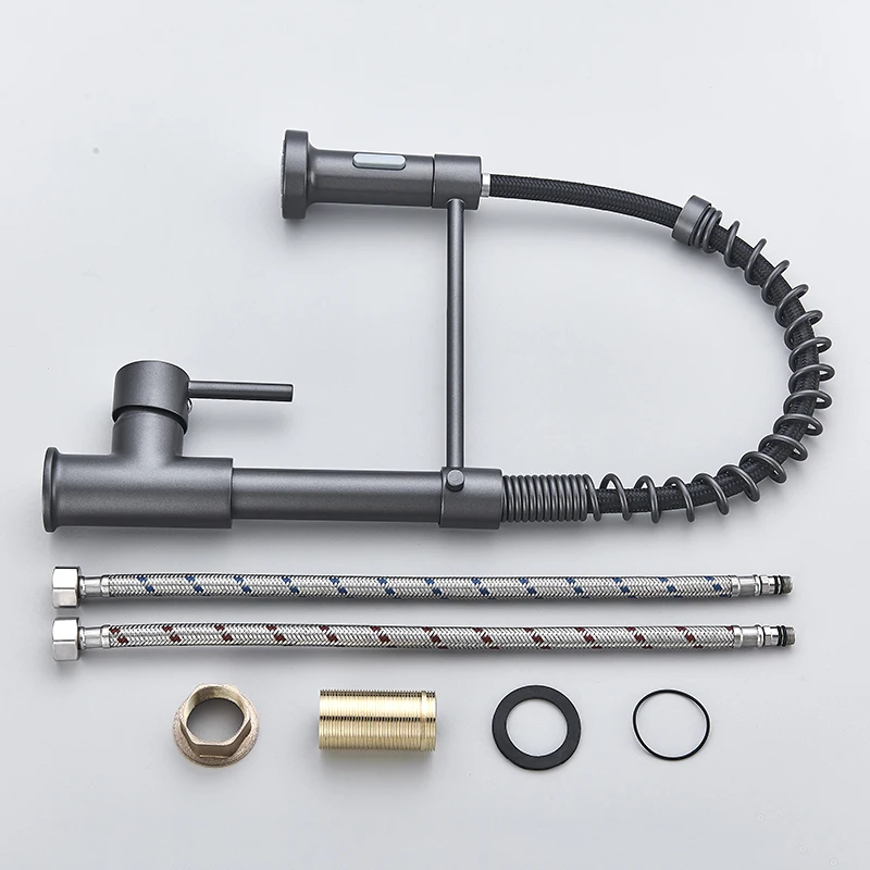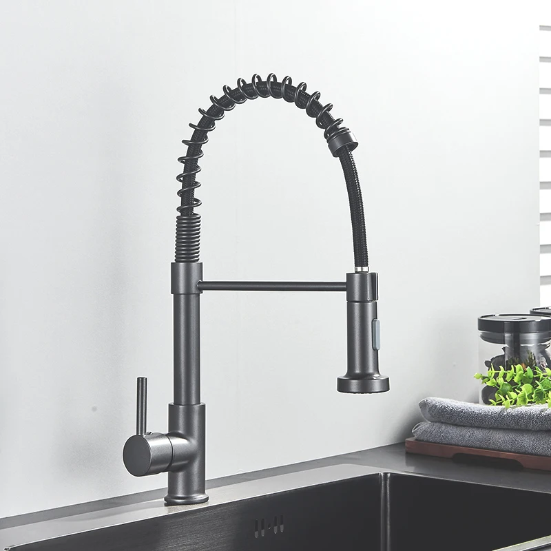 Смеситель для кухонной раковины, черный и серый цвет, два режима, выдвижной, вращение на 360