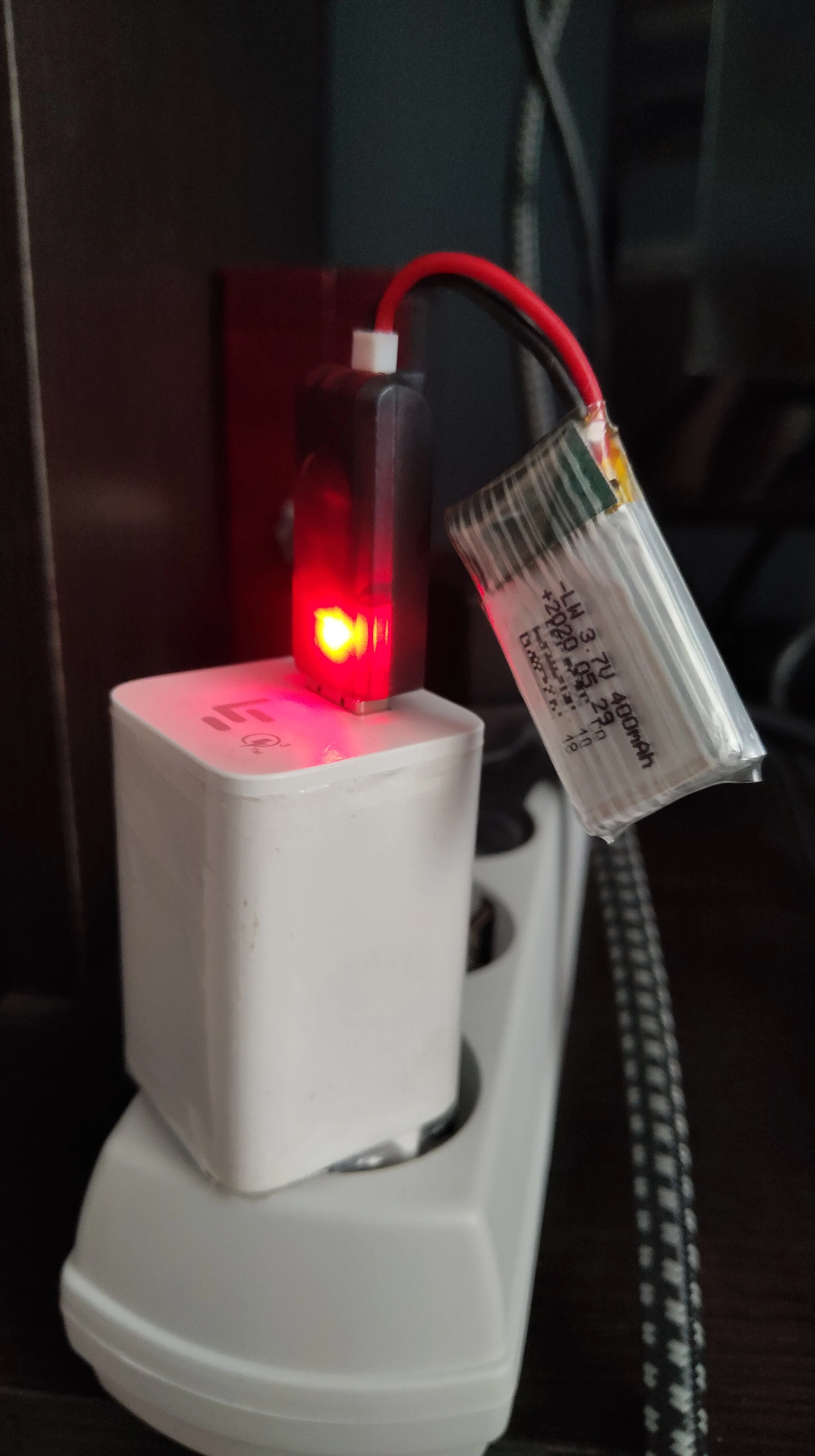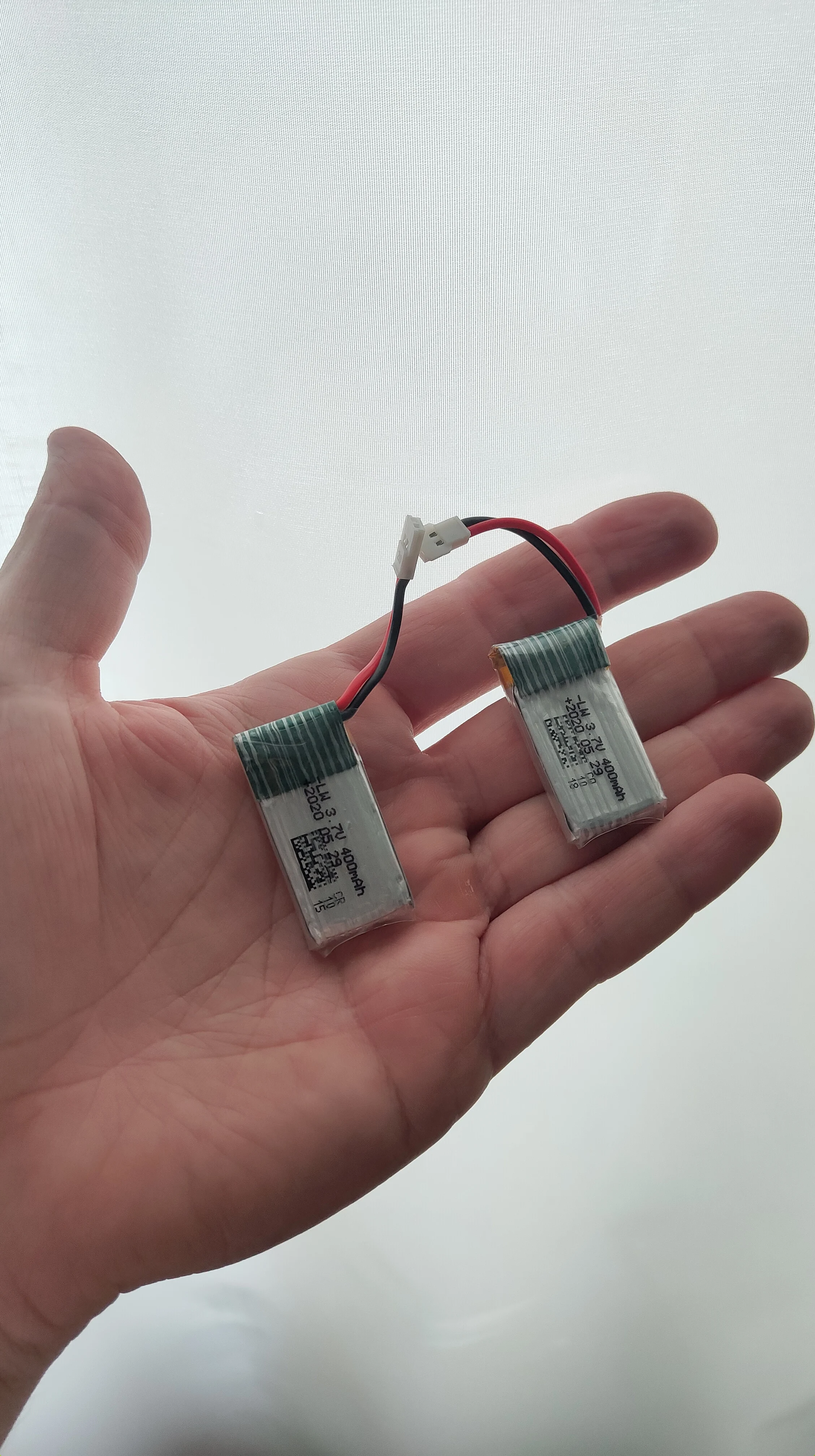 Не покупайте эту батарею, это подделка! Я измерил вес и емкость полученных батарей. Я разряженный аккумулятор с зарядным устройством imax B6, ток был 0.1A. Через час я зарядил аккумулятор от тока 0.3A. Измеренные веса-8,3 г и 8,6 г, измеренные емкости-300 мА · ч и 343 мА · ч. Для сравнения добавьте фотографию с правильным аккумулятором 400 мАч. Его вес 12,4 г и емкость 426 мА · ч. Полученные батареи не могут иметь заявленную емкость, потому что их вес гораздо меньше, чем вес, типичный для LiPo батареи с емкостью 400 мАч.