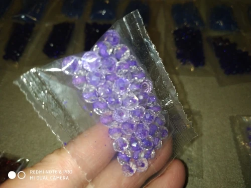 А вот эти бусины мне не понравились что они по сути прозрачные и краской внутри покрашены. Я вяжу с такими бусинами и если пару тройку раз постирать с ними изделие, они станут прозрачными. У продавца на фото они синии, на самом деле сиреневые.