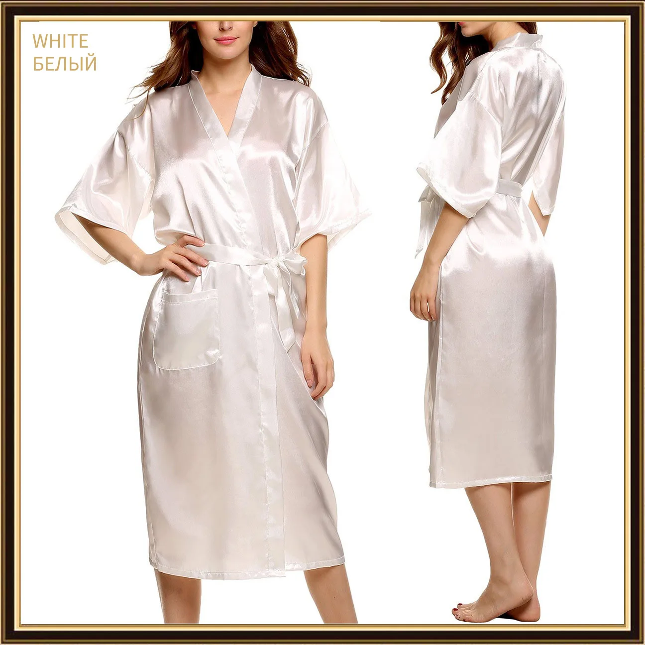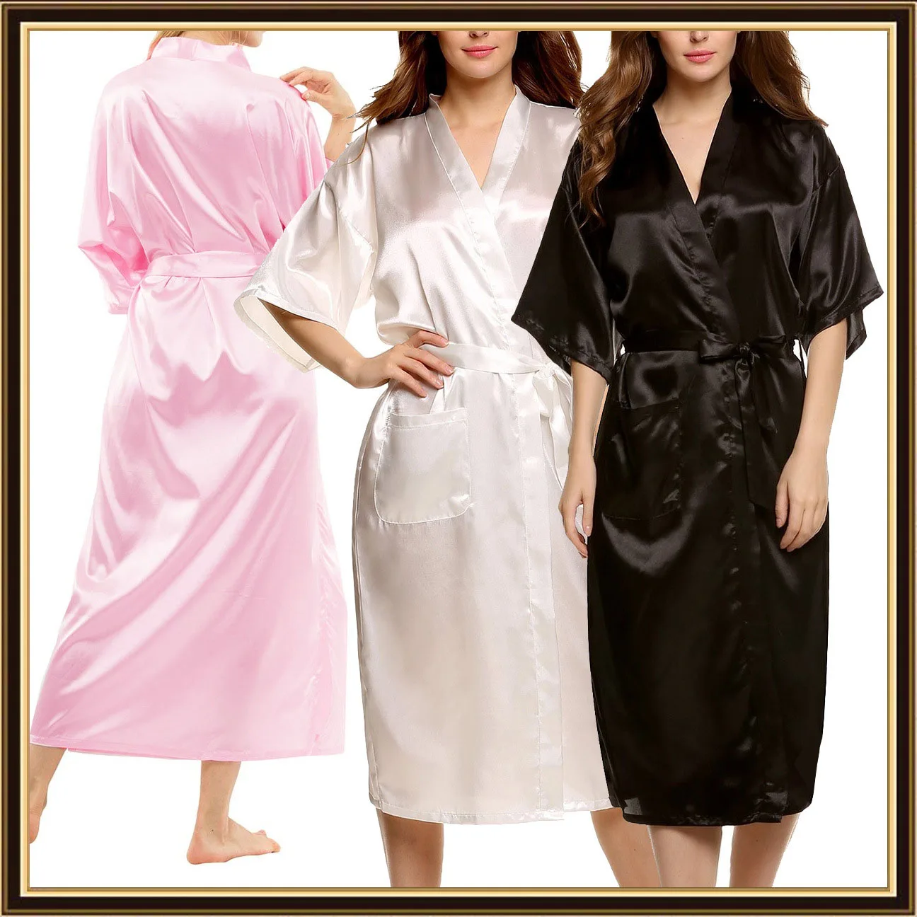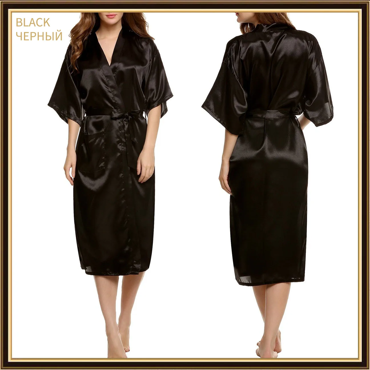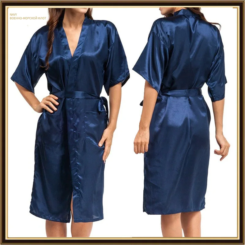 Женский атласный банный халат, черный, однотонный, с полурукавами, для невесты, подружки невесты, на лето, S-2XL