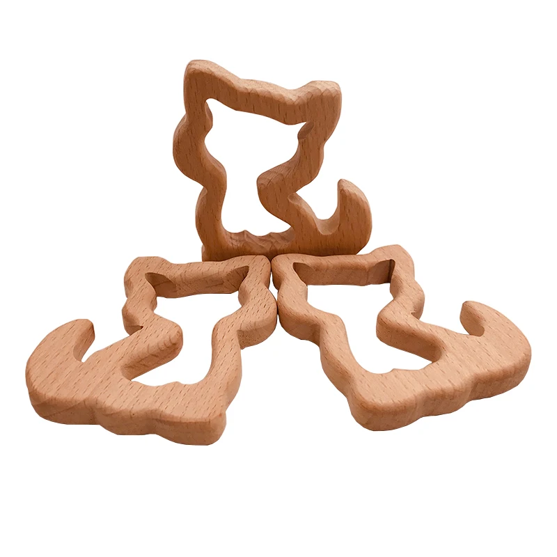Coskiss детский деревянный прорезыватель из Букового дерева, мультяшный Кот, игрушки-прорезыватели Монтессори, вдохновленный подвеской для ухода, детский Прорезыватель