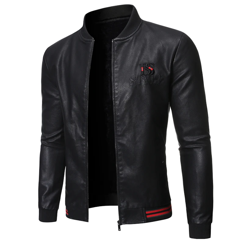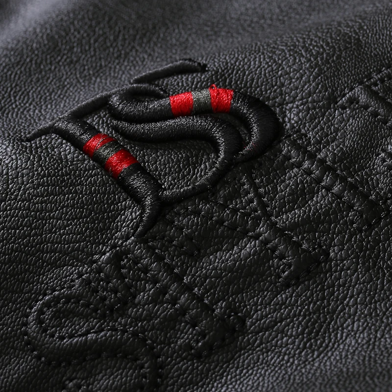 Мужская кожаная куртка на молнии, с воротником-стойкой и вышивкой