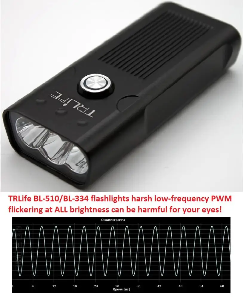 Быстрая доставка. Упаковка в порядке. 3X LED! Отличный прочный и приятный металлический корпус! Очень хороший аккумулятор 5400 мАч! К сожалению, это самый плохой свет, который вы можете получить: 1) он использует грубую низкочастотную ШИМ-мерцание на всех уровнях яркости включает максимум-что в темноте может быть вредно для ваших глаз! 2) у него есть метод подделки яркости, когда свет яркий на старте, но только после 5 мин света уменьшается в течение> 2 раз! 3) светлый цвет имеет слегка румяный оттенок и без настоящего широкого ближнего света, что важно для безопасности езды на велосипеде. Эти проблемы были протестированы на трех образцах-все то же самое. Батареи спаяны. [Зарядка: 1А, 5400 мА · ч, 6h20m. Разряд при максимальной яркости = 5h45m.] В целом фонарики с таким мусорным фонариком не должны продаваться. Более подробная информация скоро в базе данных GeniusVerus light.