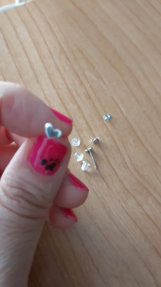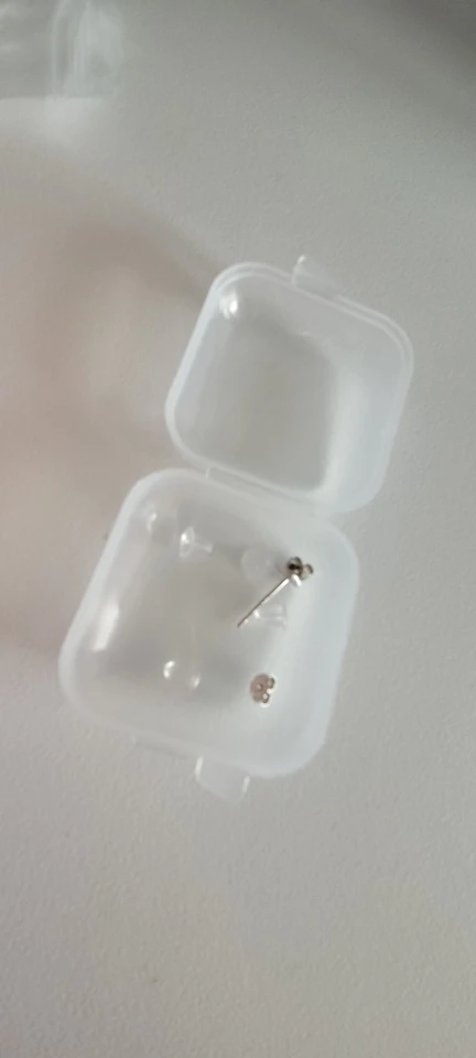 Он прибыл через 15 дней... Очень быстро., Серьги Серебряные, у них два гайки, одна серебряная, а другие силиконовые, они также имеют свою коробку и продавец добавил замшу для очистки серебра, он прибыл только на День святого Валентина. Серьги маленькие, идеально подходят для девушки и пирсинга.