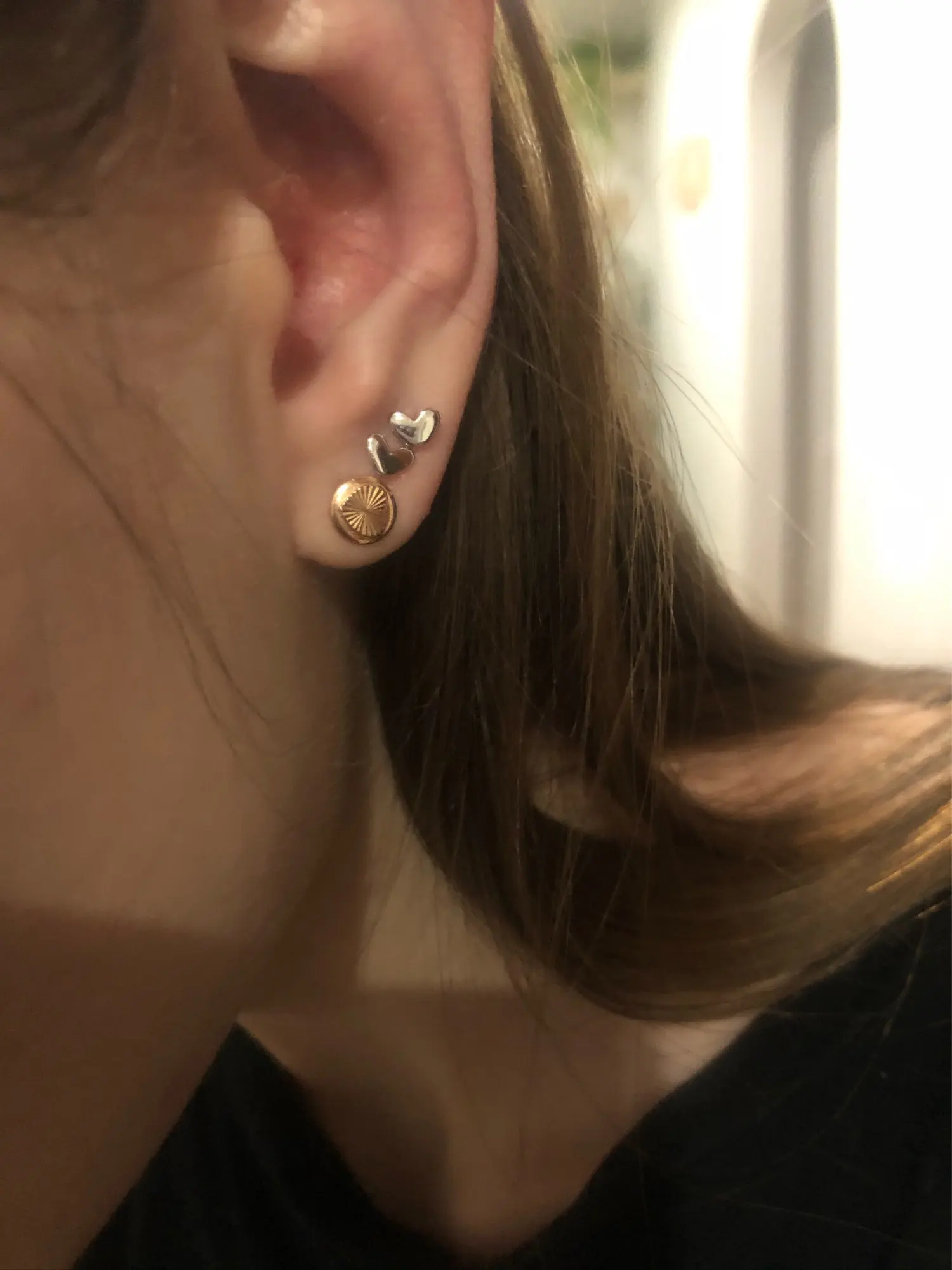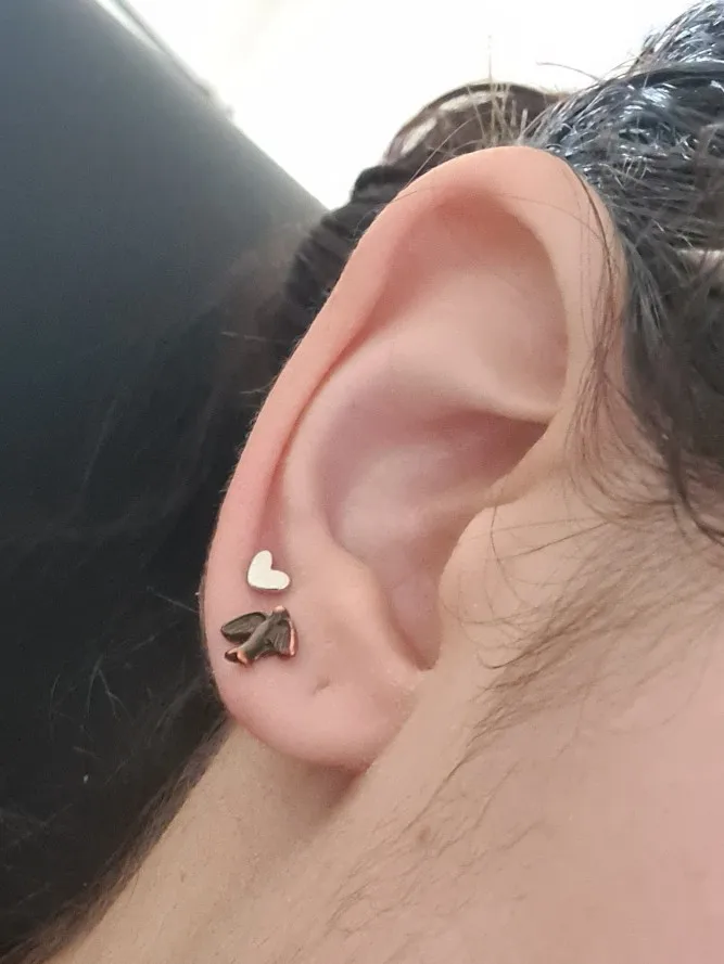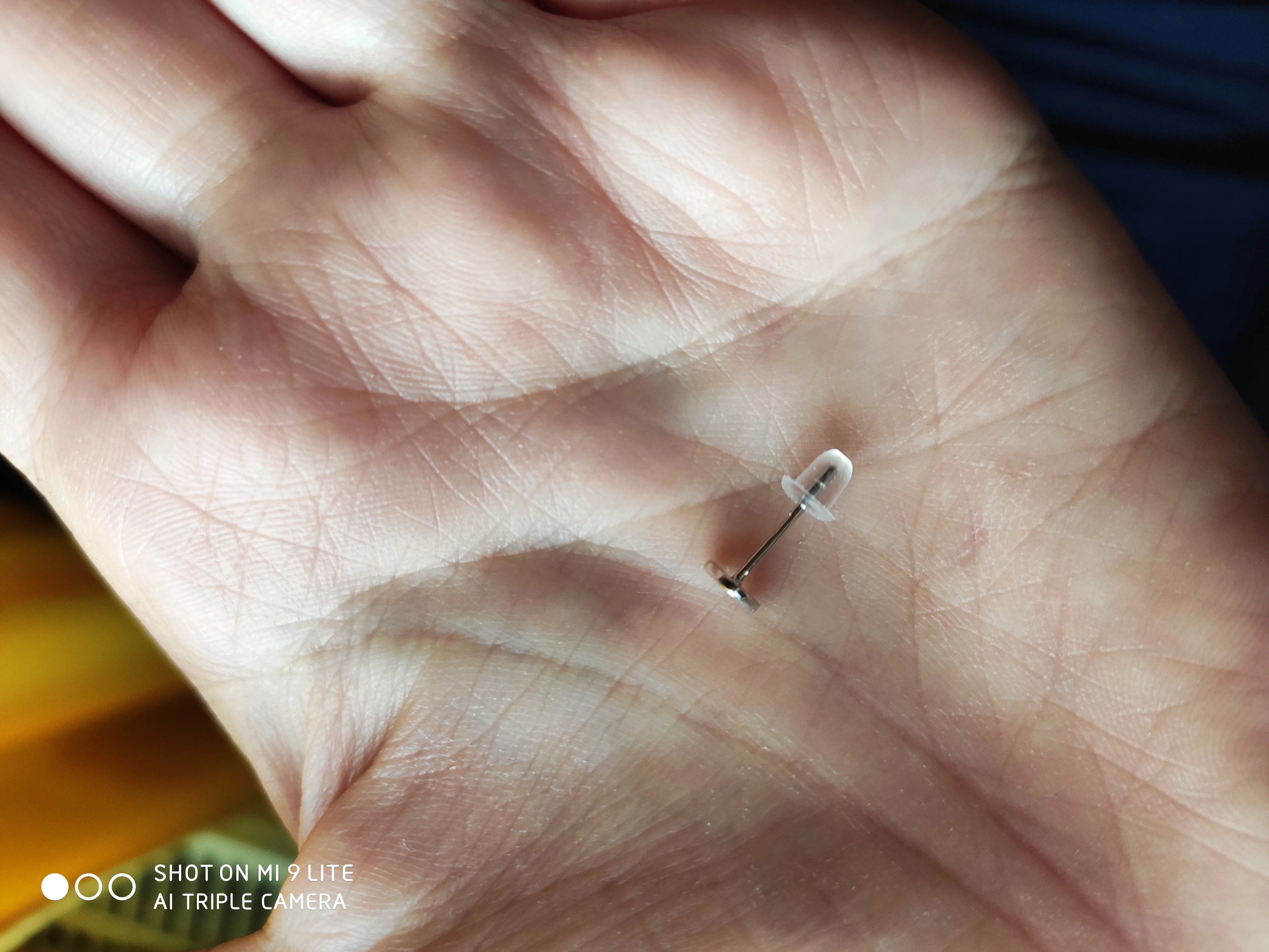 Очень красивый и маленький, идеально подходит для второго и третьего отверстия. Все очень хорошо упаковано и качественно. Они пришли в отдельных сумках, в коробке и с тремя парой орехов, двумя силиконовыми и одной серебряной. Очень доволен.