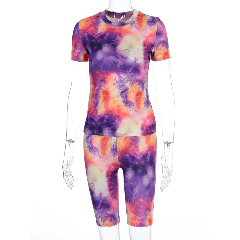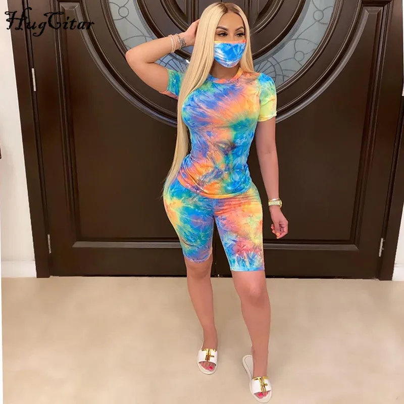 Hugcitar 2020 галстук краситель короткий рукав bodycon Футболка байкерские шорты комплект из 2 предметов летняя женская мода уличная одежда спортивный костюм